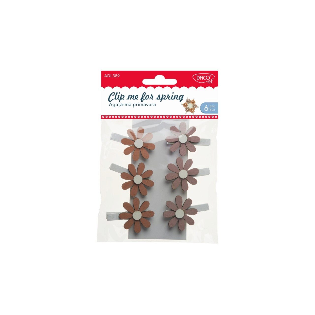 Setul contine 6 bucati de floricele de lemn de 5 cm, cu design modern.