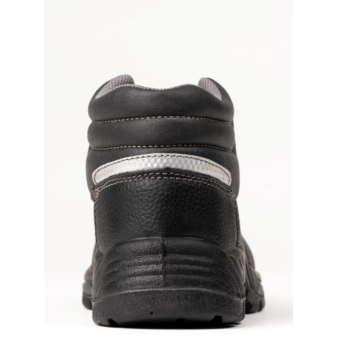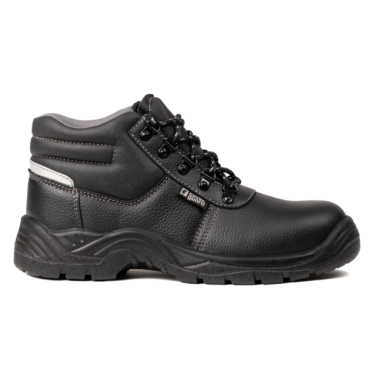 * bocanci de protecție cu partea superioară din piele neagră * bombeu din oțel inoxidabil împotriva obiectelor în cădere și lamelă din oțel împotriva perforării * talpă din PU rezistentă la ulei, antistatică, dublă densitate, rezistență la alunecare SRC nivel superior * gleznă și limba buretate * interior din material din plasă ventilat