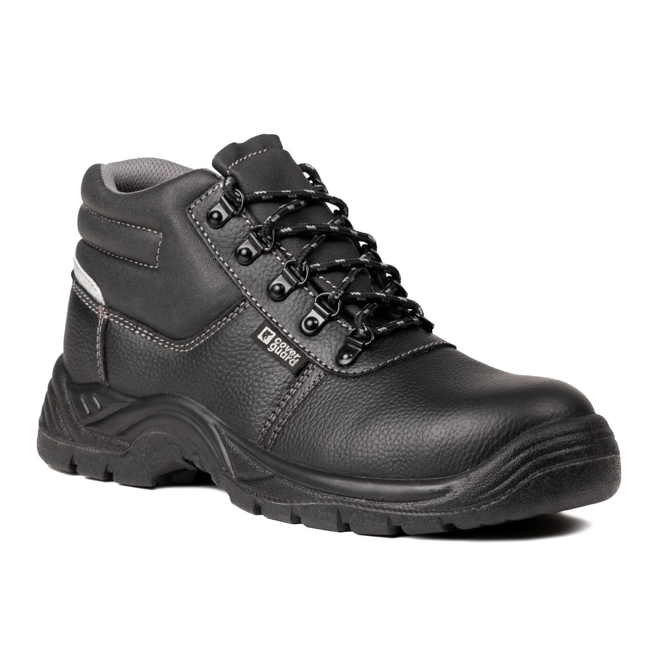 * bocanci de protecție cu partea superioară din piele neagră * bombeu din oțel inoxidabil împotriva obiectelor în cădere și lamelă din oțel împotriva perforării * talpă din PU rezistentă la ulei, antistatică, dublă densitate, rezistență la alunecare SRC nivel superior * gleznă și limba buretate * interior din material din plasă ventilat