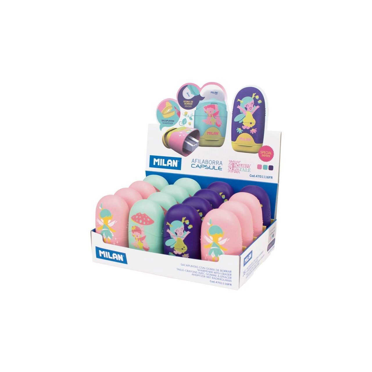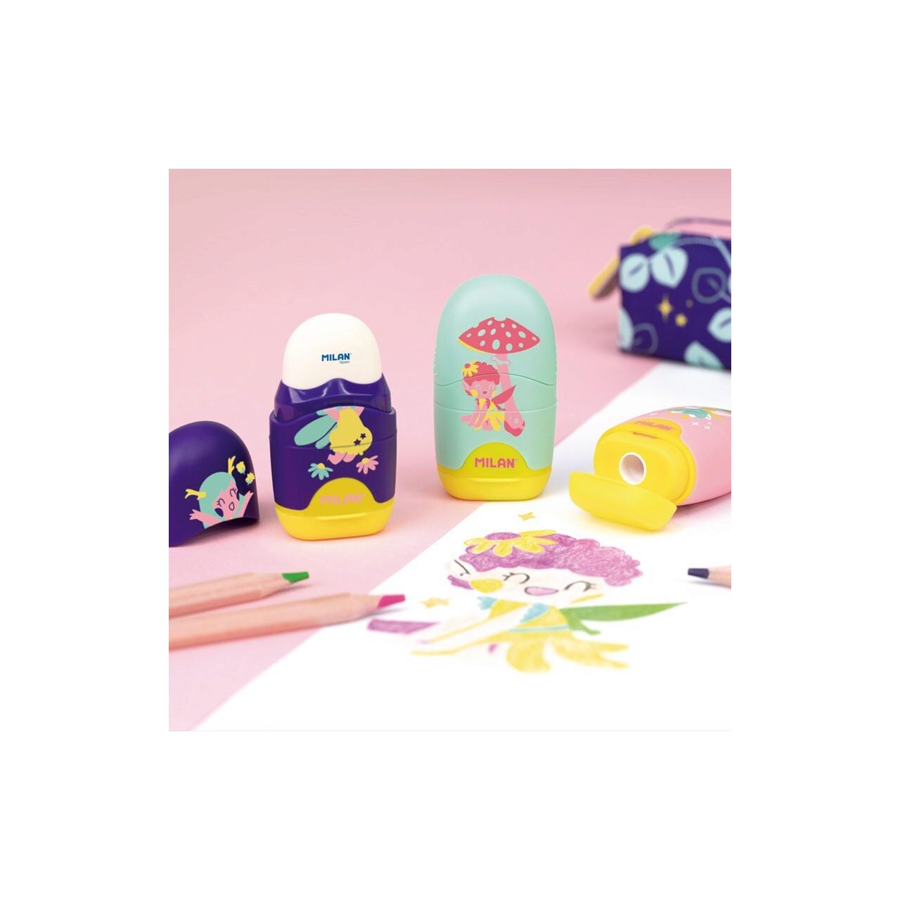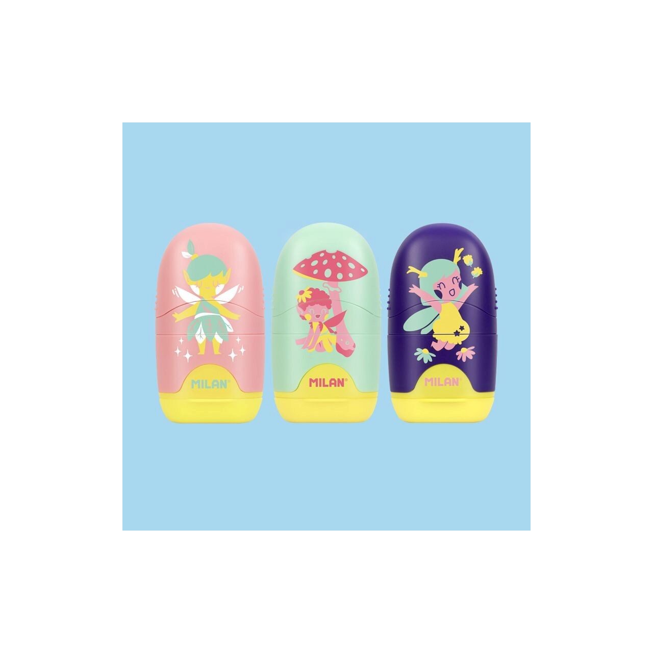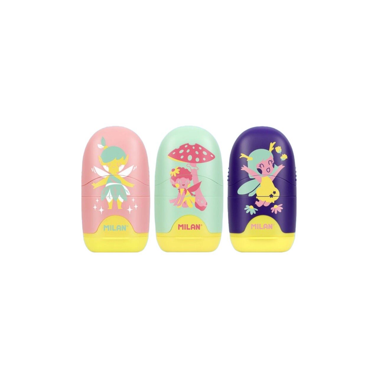 Ascuțitoarea cu radieră MILAN din colecția Fairy Tale va face procesul de scriere și ștergere mult mai ușor, rapid și distractiv.