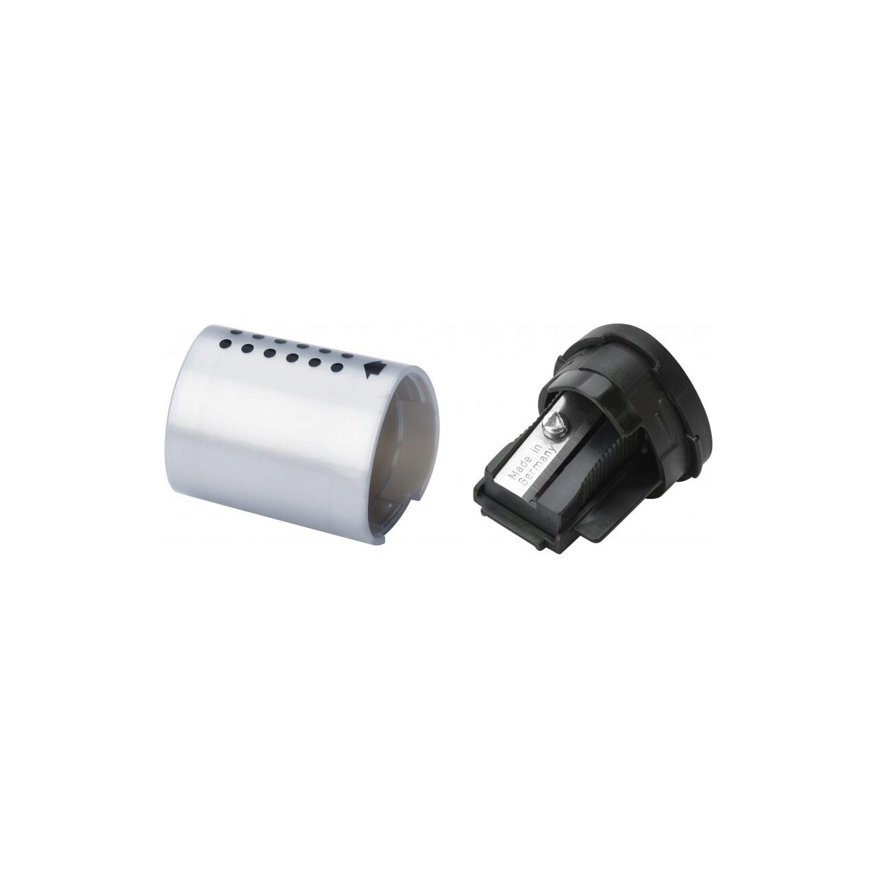 Ascutitoare simpla cu design Grip. Unghi universal de ascutire de 24: pentru toate creioanele standard si colorate. Surub de siguranta. Container pentru reziduuri. Dimensiune ideala pentru penar.
