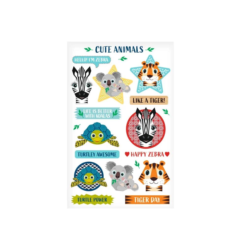 Set autocolante, 3 coli, dimensiune coala 8 x 12,5 cm, dimensiune totala 8 x 16 cm, motiv Cute Animals
