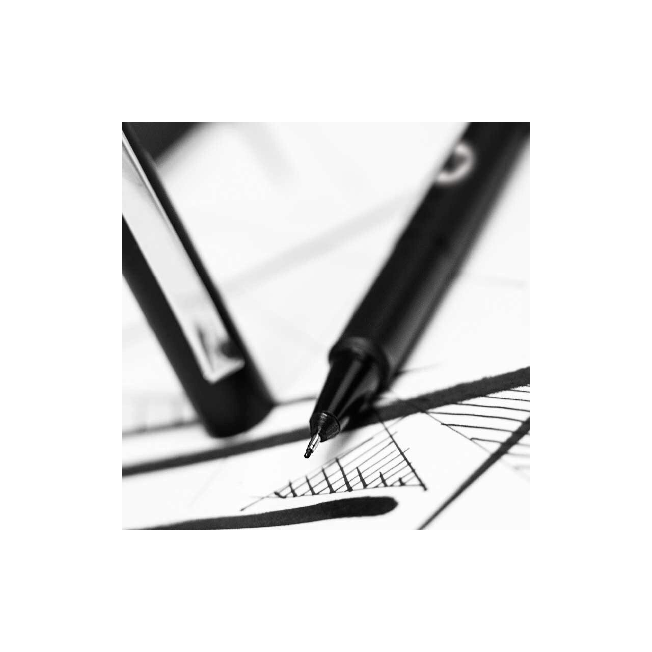Utilizabil pentru lucrări grafice, schițe, detalii, desen tehnic sau pur și simplu ca instrument de scris, Blackliner, fabricat în Germania, dispune de un tuș permanent, rezistent la apă și la substanțe chimice.