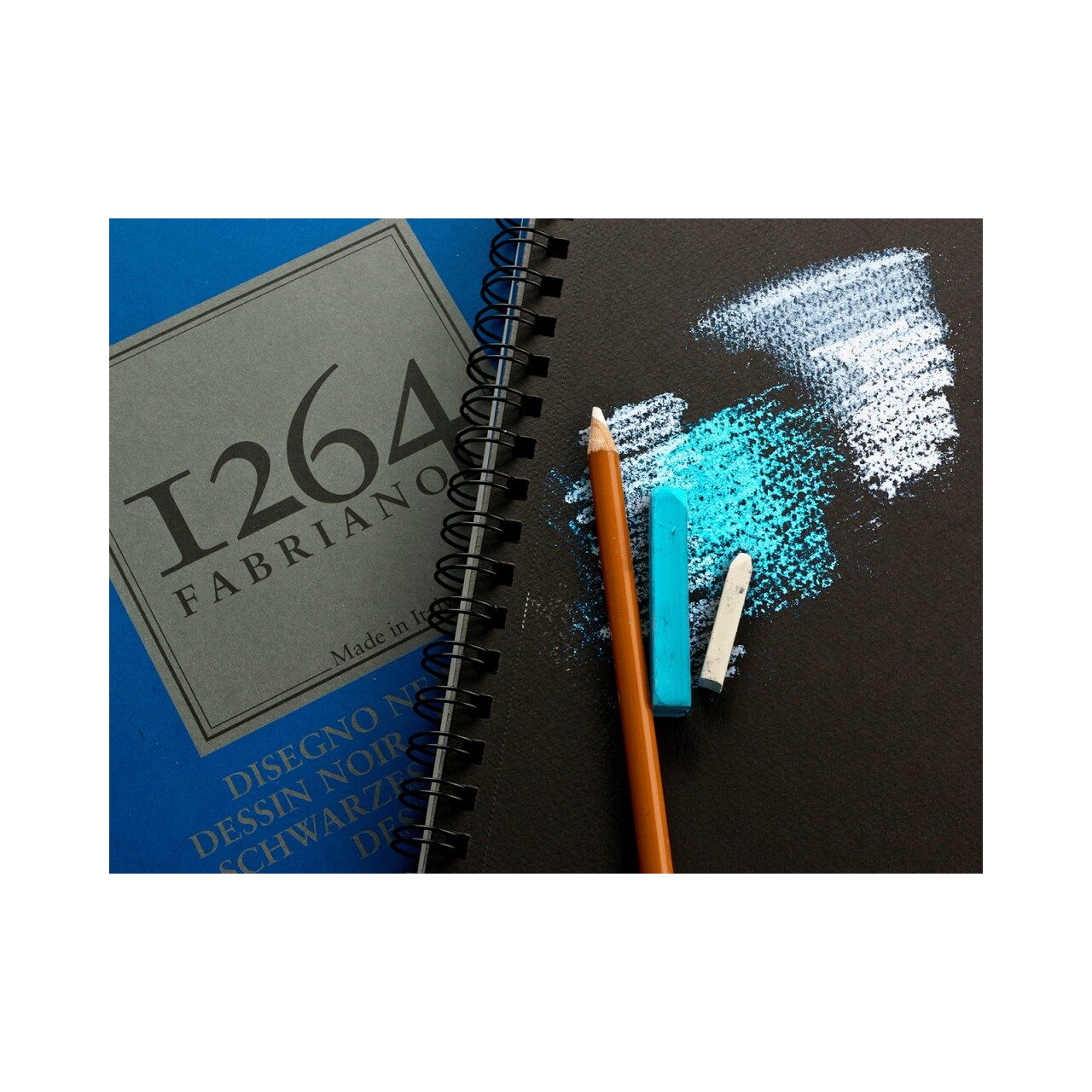 Fabriano 1264 Black Drawing este alcătuit din file de culoare neagră, cu textură ușor rugoasă, special dezvoltată pentru a reține pigmenții de culoare.