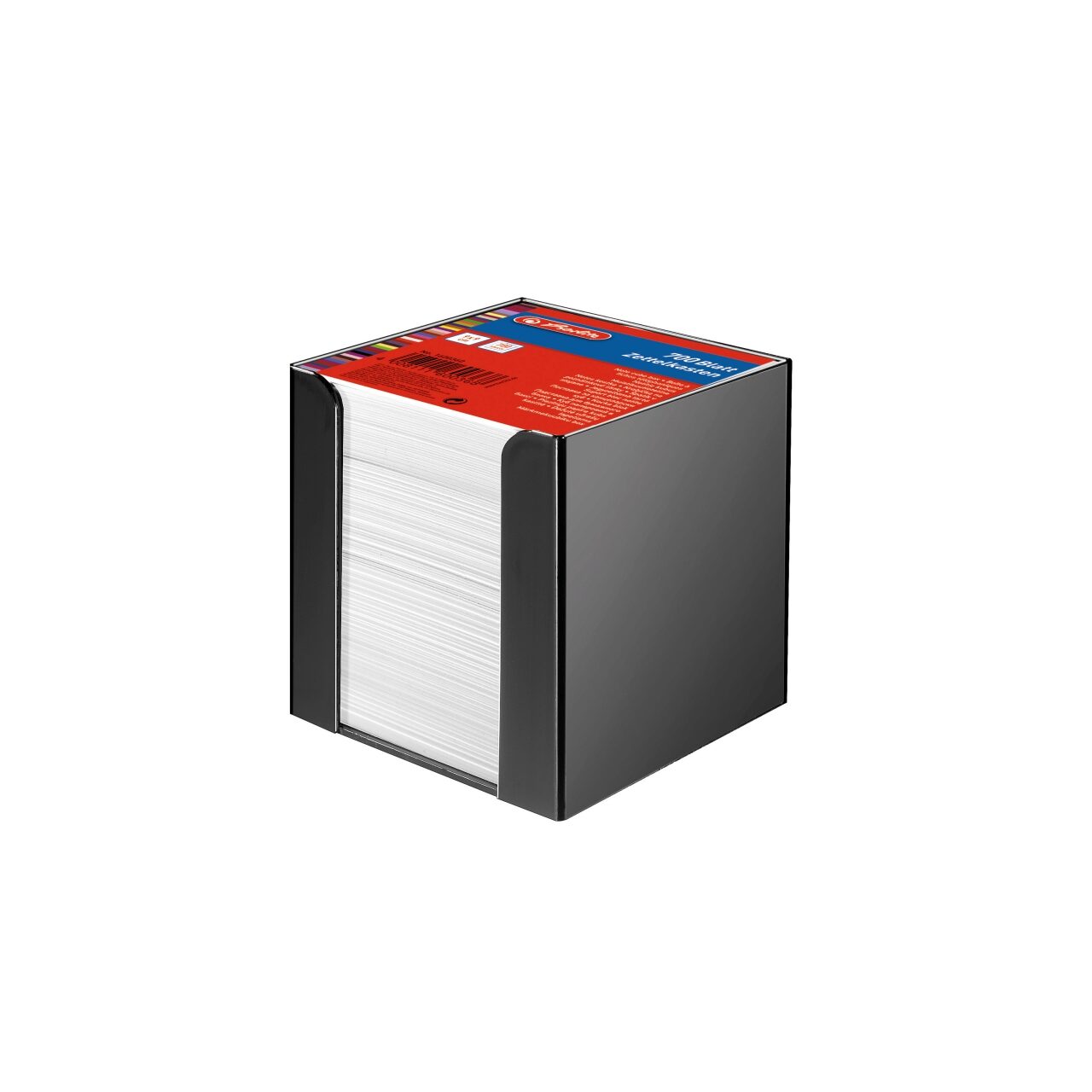 Cub notite, Herlitz, suport de plastic negru, 700 file, 80g/mp, alb, 9x9x9 cm, 1 bucata in folie de plastic