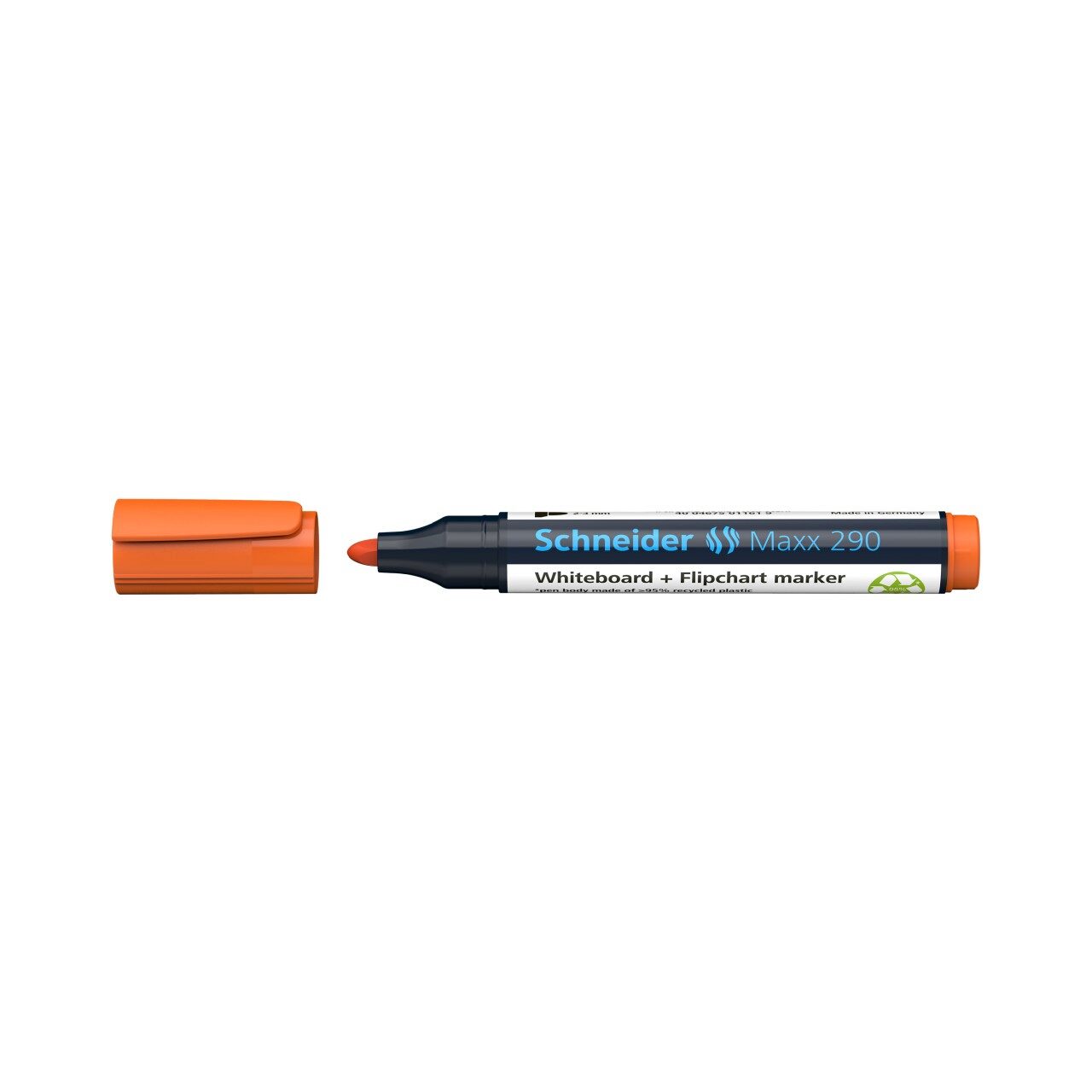 Markerele Schneider pentru whiteboard pot fi folosite și pentru scrierea pe hârtia de flipchart datorită cernelii speciale ce poate fi ștearsă ușor de pe tabla whiteboard și nu se vede pe partea cealaltă a hârtiei de flipchart.