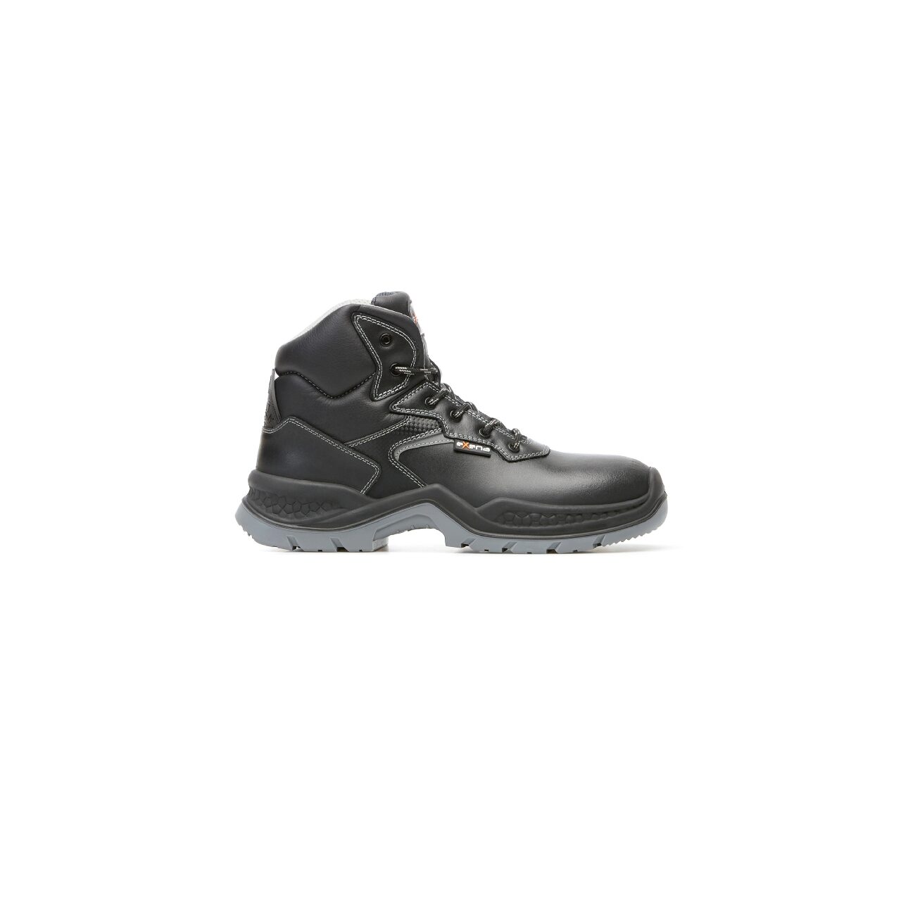 Partea superioară hidrofugă, ventilată, puternică, din piele de bovină neagră, cu bombeu compozit ușor, (CK) * lamelă textilă anti-perforare, fără metal, flexibilă, antiderapant SRC * toc absorbant de energie, talpă puternică cu furnir dublu strat, branț PU, rezistent la abraziune, căptușeală interioară respirabilă * talpă și toc întărite, căptușite, piele pentru gleznă și limba buretată, confortabilă