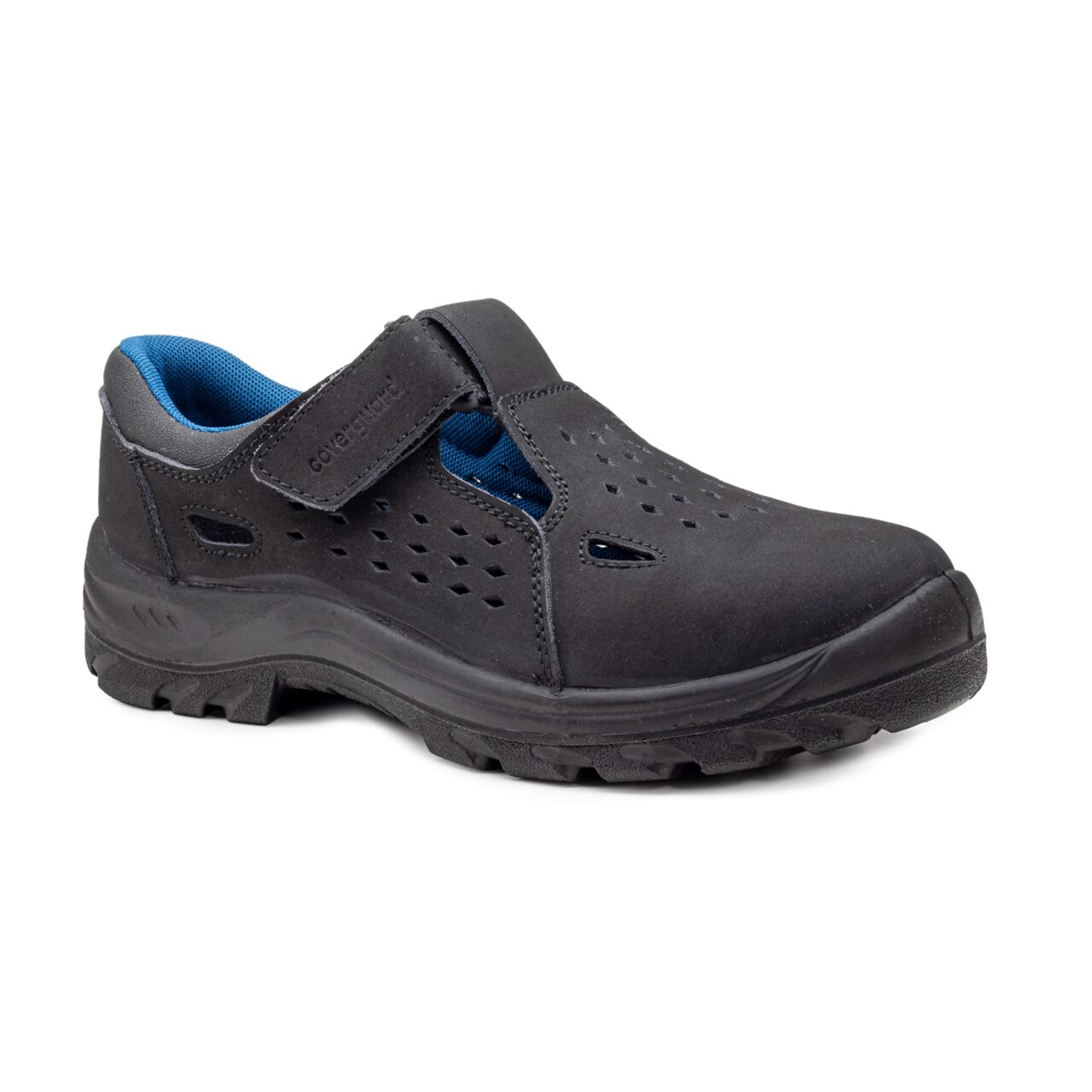 * sandale de protecție cu velcro, din piele moale nubuc, bine ventilată , fără bombeu * talpă flexibilă dublă densitate din PU, antistatică, rezistent la uleiuri și acizi, antiderapante SRC, testată pe suprafețe ceramice și din oțel umede, branț confortabil, căptușeală interioară nețesută albastră