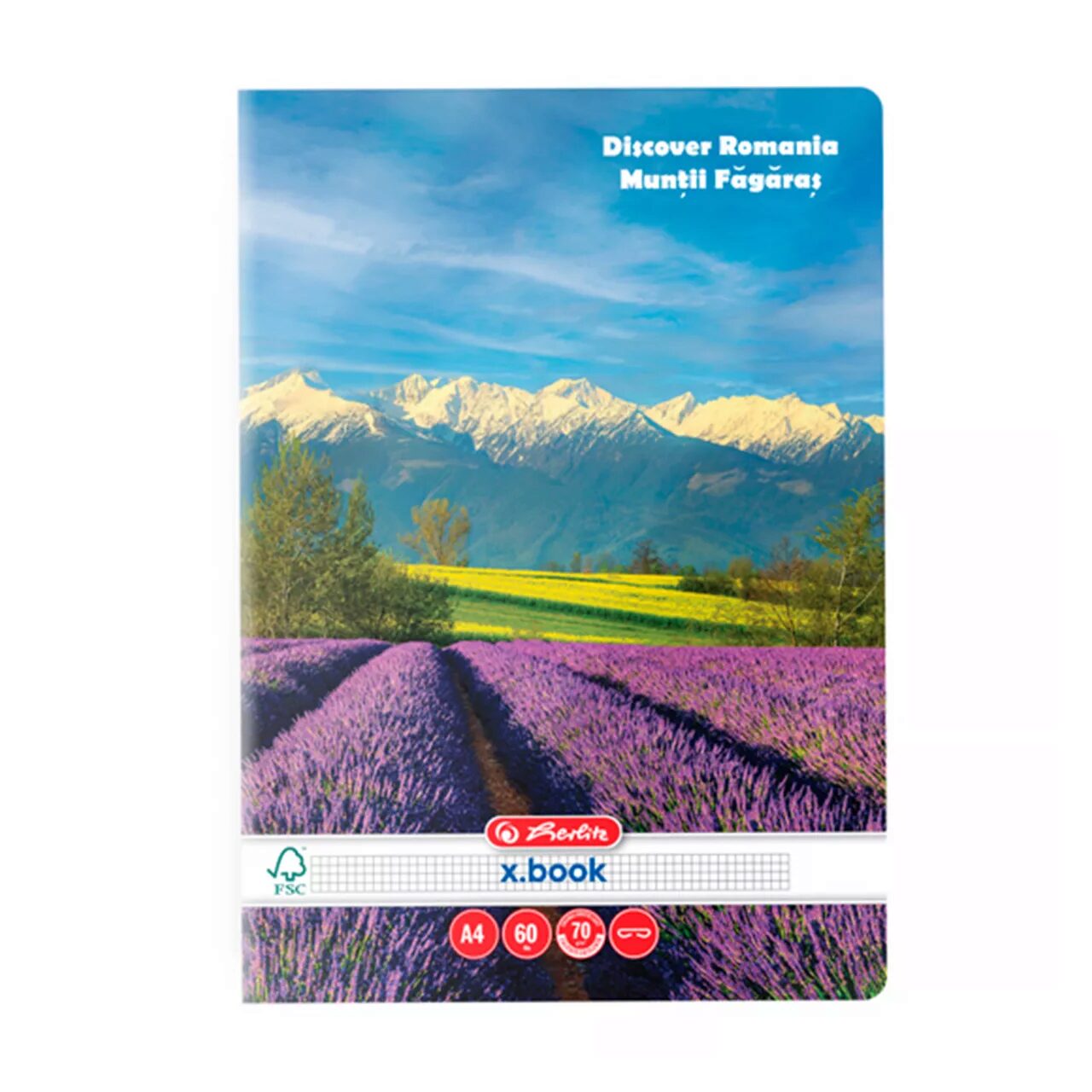 Caiet, format A4, coperti din carton dublu cretat, lucios, colturi rotunjite, hartie 70 g/mp, 60 file, matematică, capsat