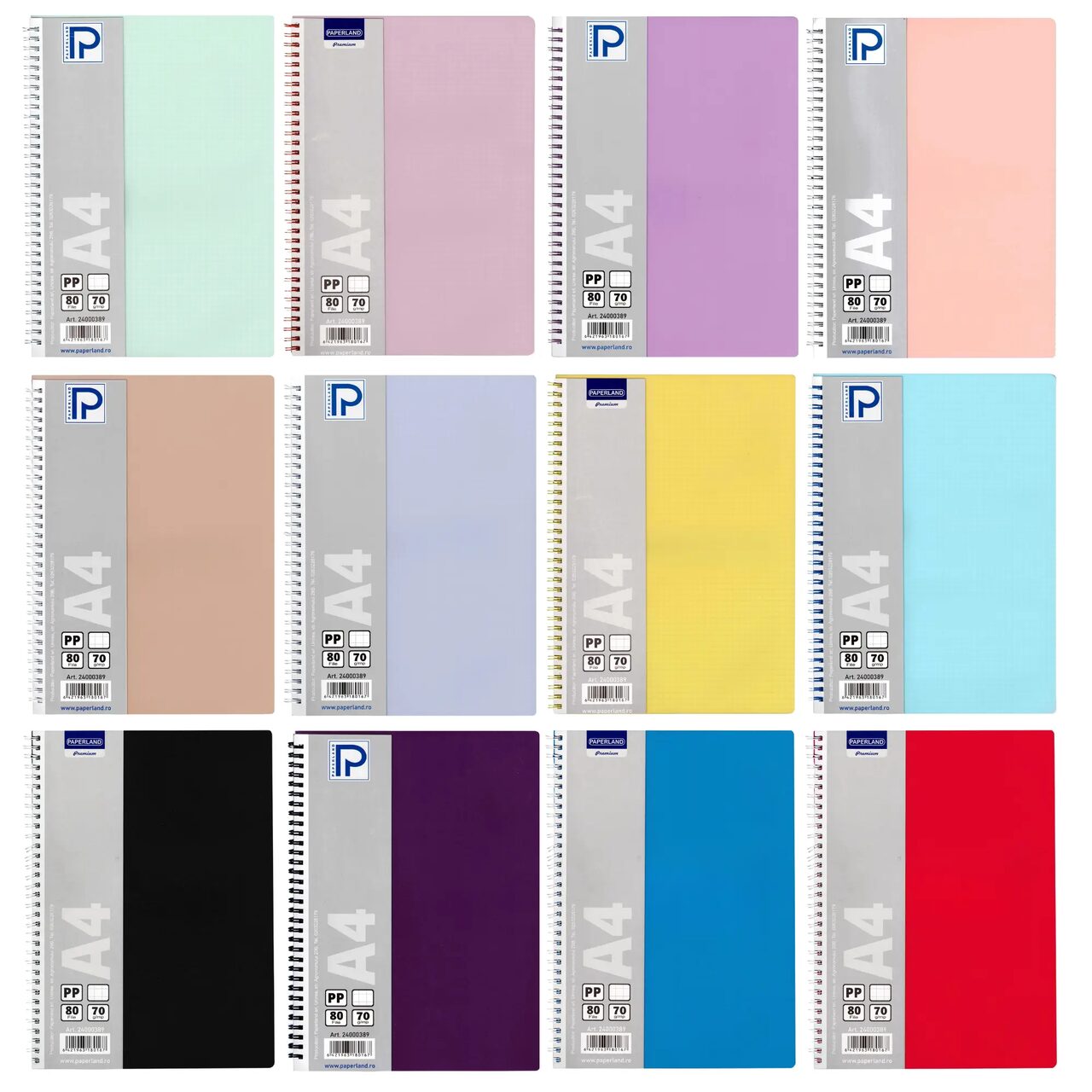 Caiet A4 cu spirala, coperta plastic, 80 file – PAPERLAND