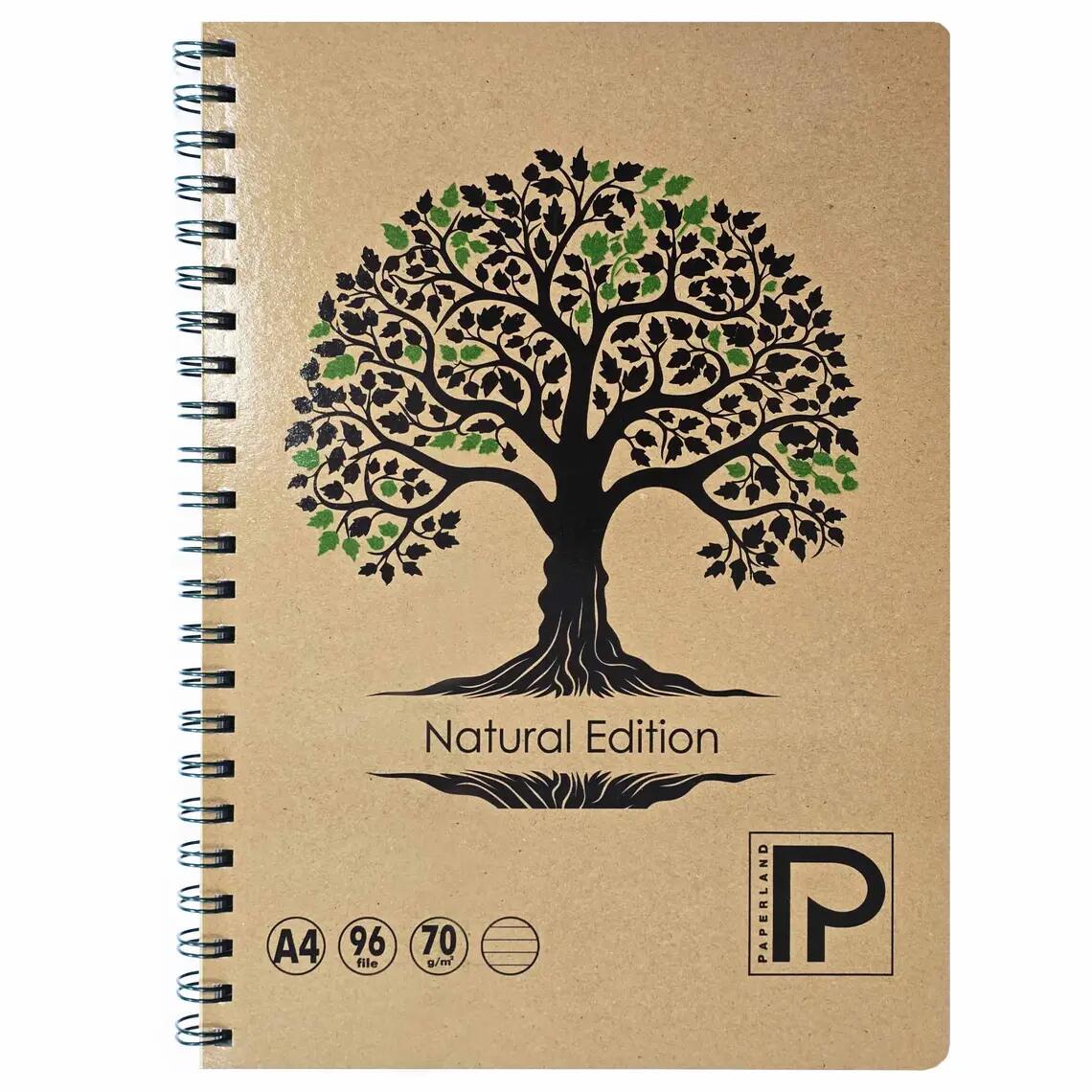 Caiet A4 cu spirala dubla, 96 file, coperta carton – PAPERLAND Natural Edition