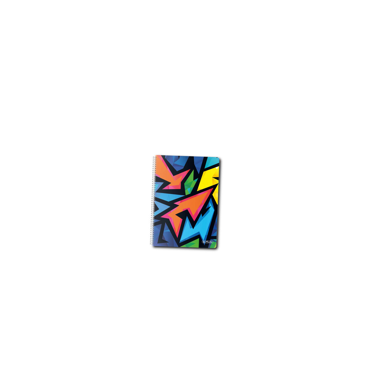 Caiet A5 cu spira, 100 file, hartie 70 g/mp, patratele, microperforatii, colturi rotunjite, coperta tare, motiv Neon Art.