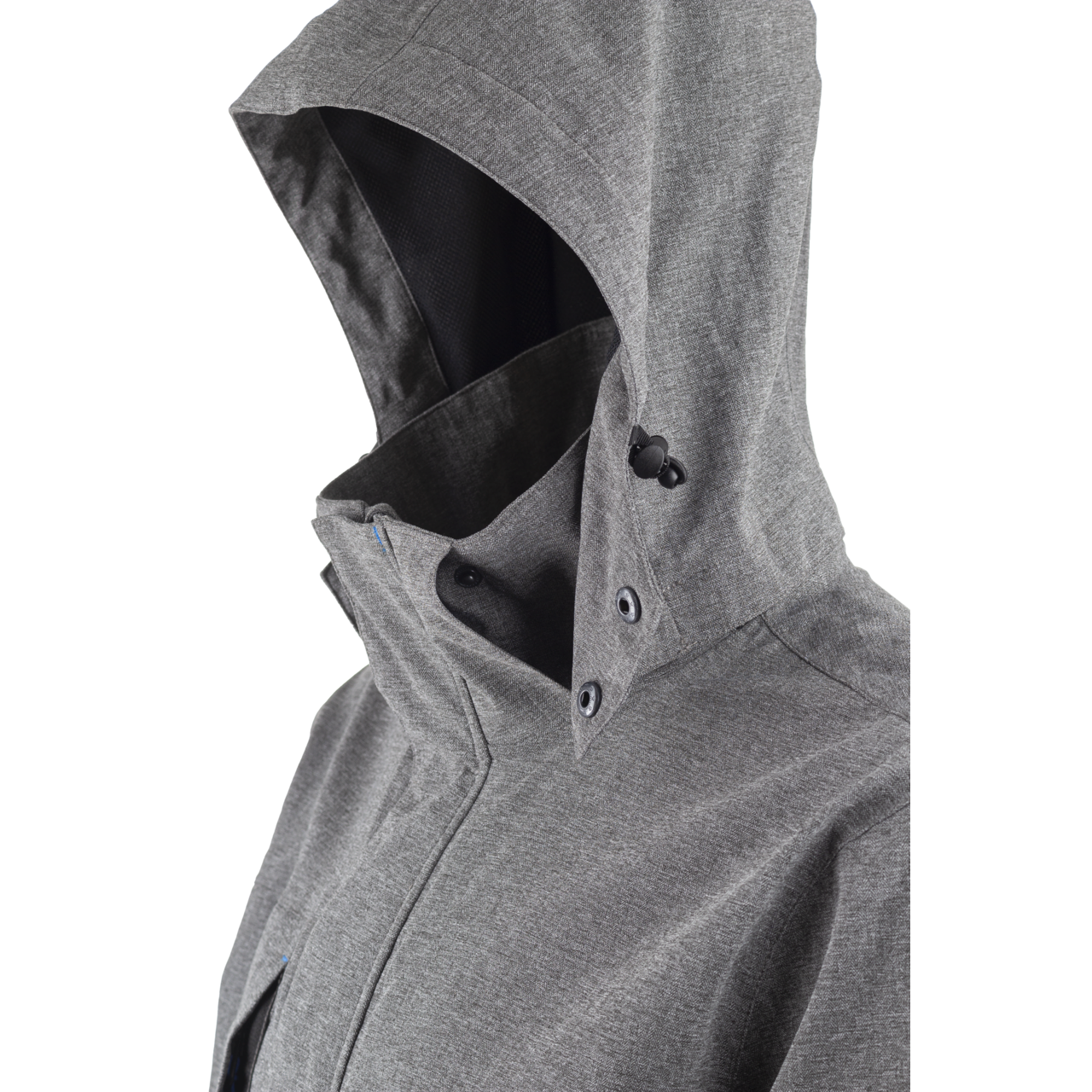 softshell cu 2 straturi: herringbone 92% pes/8% ea + membrană pu 180g/m² + căptușeală plasă 70g/m² impermeabilitate: 5 000 mm respirabilitate: 2 500g/m²/24h cusături cu bandă glugă antifurtună detașabilă guler înalt cu fermoar central velcro coate preformate manșete semi-elastice + velcro centura reglabilă + tivul cu șnururi elastice 4 buzunare spate extins acces la branding en 343 4.4