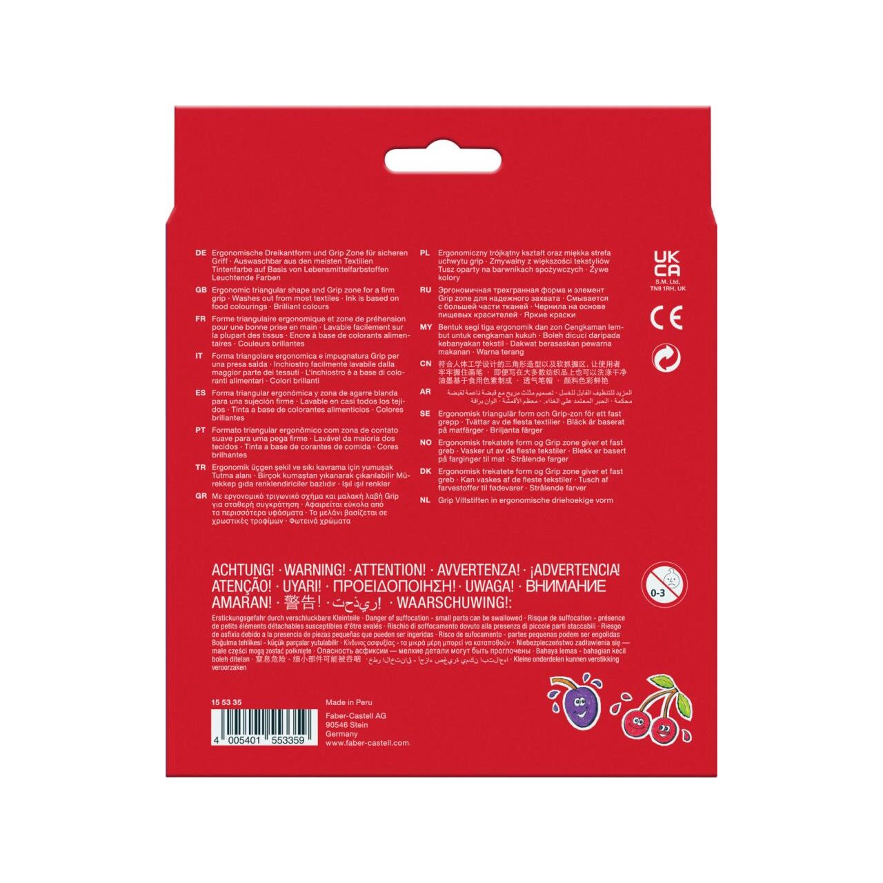 Forma ergonomica triunghiulara, pentru o folosire usoara. Zona anti-alunecare patentata GRIP, cu mici puncte de masaj. Varf rezistent la presiune crescuta. Cerneala pe baza de apa si substante naturale. Culorile pot fi curatate de pe majoritatea tesaturilor. Culori luminoase si expresive.