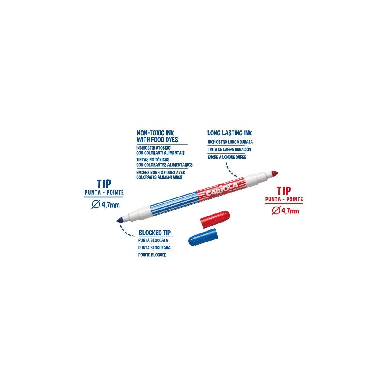 - Vârf la ambele capete de culori diferite, aceeași grosime (conic), rezistent la apăsare