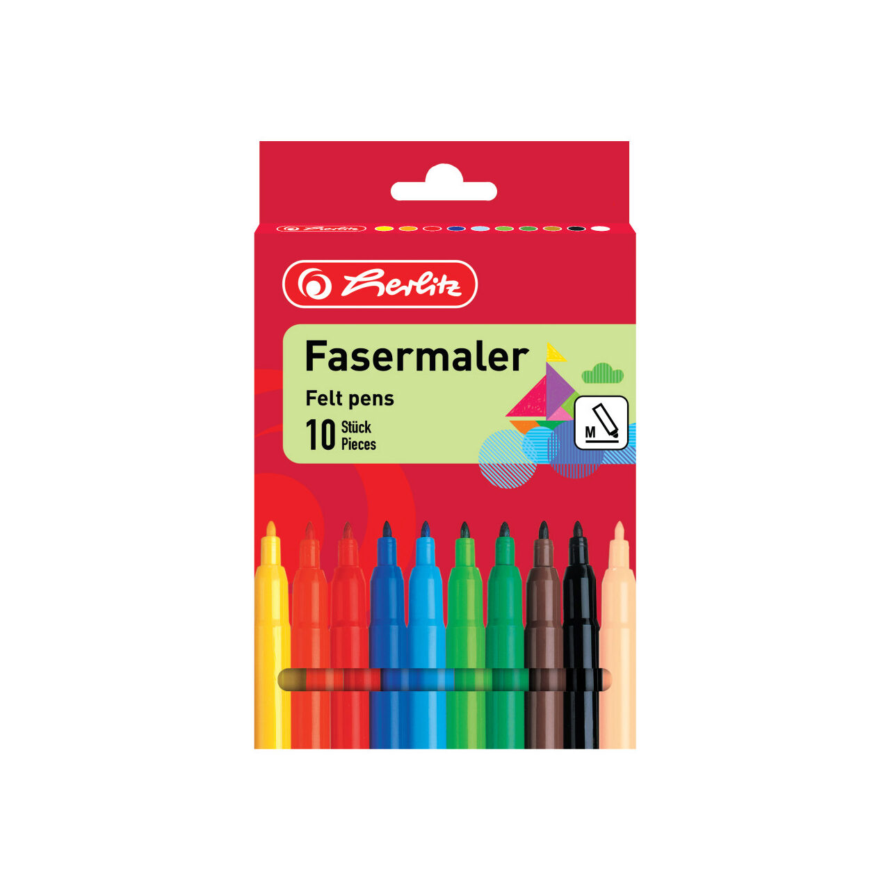 Carioci, sectiune circulara, corp din material plastic, cerneala pe baza de coloranti naturali, Non Toxic, varf 2 mm, set 10 culori, herlitz