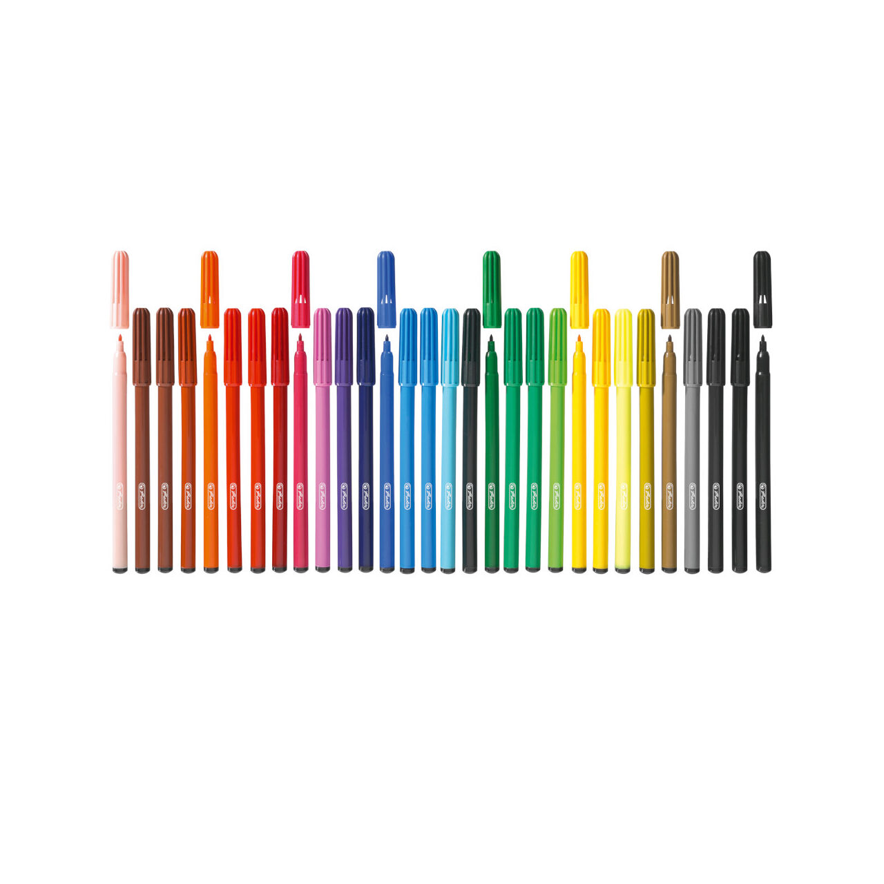 Carioci, sectiune circulara, corp din material plastic, cerneala pe baza de coloranti naturali, Non Toxic, varf 2 mm, set 30 culori, herlitz