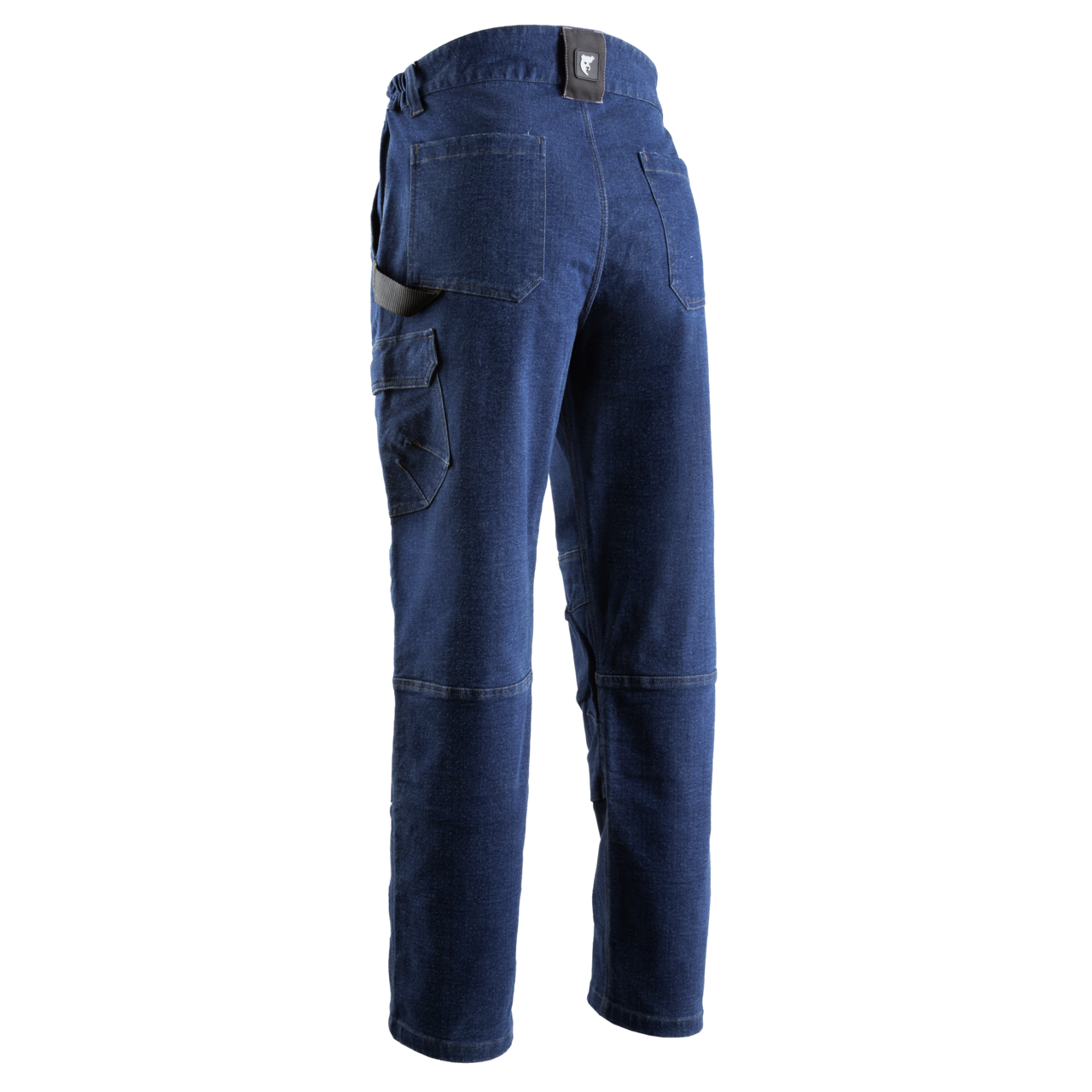Beneficii : FUNCȚIONALITATE: Îndeplinește cerințele uzuale ale pantalonilor de lucru PROTECȚIE: buzunare pentru genunchiere 8KNEE CONFORT: conține elastan + 98% bumbac ROBUST: material denim