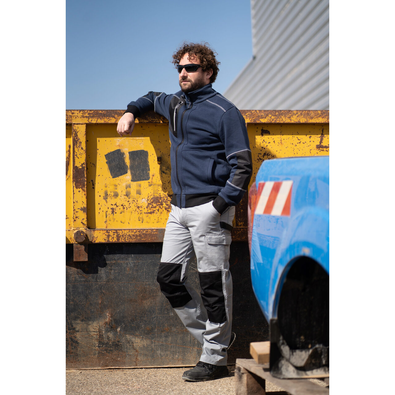 TWILL: 98% bumbac / 2% elastan - 200g/m2 Spate înalt 6 buzunare 1 buclă pentru scule Bandă elastică în talie pe laterale Buzunare pentru genunchiere Cusături triple Croială regular EN 14404: Tip 2