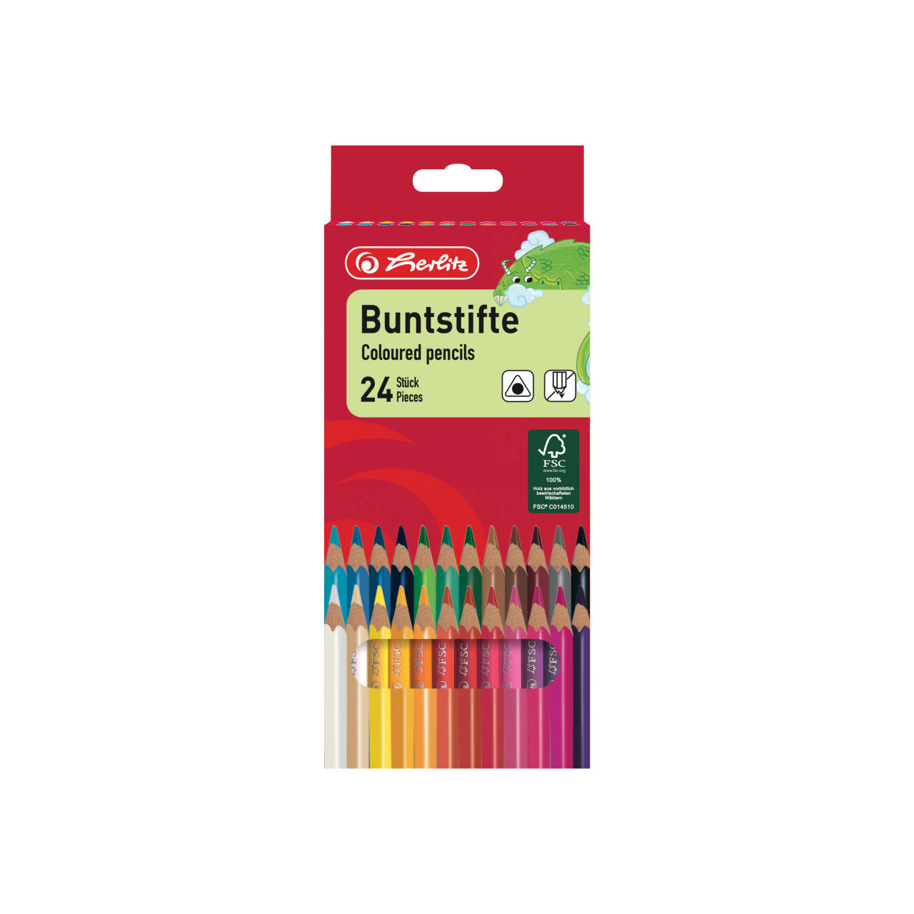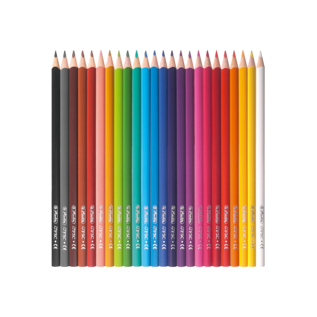 Aveti nevoie de putina magie? Atunci creioanele de colorat Herlitz sunt solutia perfecta! Acestea nu sunt doar instrumente de desen, ci sunt portaluri catre lumi imaginare, unde creativitatea copiilor poate zbura sa exploreze orizonturi nemaivazute. Desenul este una dintre etapele ce preced invatarea scrisului, dar si primul pas al copiilor spre invatarea si stapanirea functiilor motorii avansate. Copiii folosesc creioanele colorate pentru a invata prin joaca. Cu o gama variata de culori stralucitoare, creioanele noastre de colorat va vor ajuta sa creati cele mai frumoase si luminoase desene.Sectiunea ergonomica, triunghiulara, ofera sprijin optim copiilor pentru invatarea scrisului si ii incurajeaza sa tina corect creionul pentru a scrie. • 24 culori • corp lacuit • sectiune triunghiulara • din lemn natural certificat 100% FSC • mina 2,5 mm