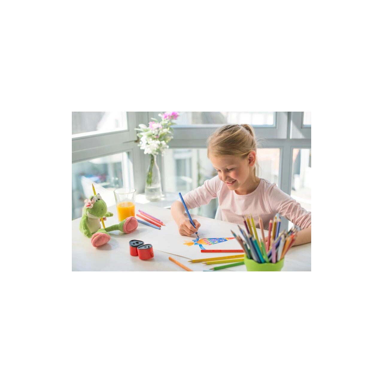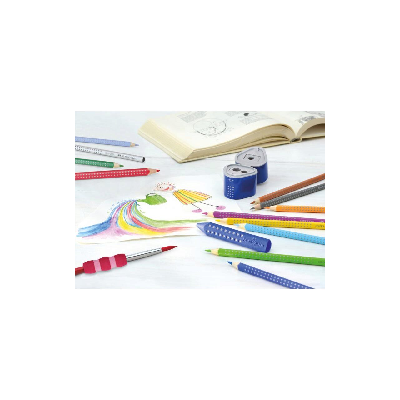 Creion colorat cu zona de prindere patentata anti-alunecare pentru o prindere sigura.