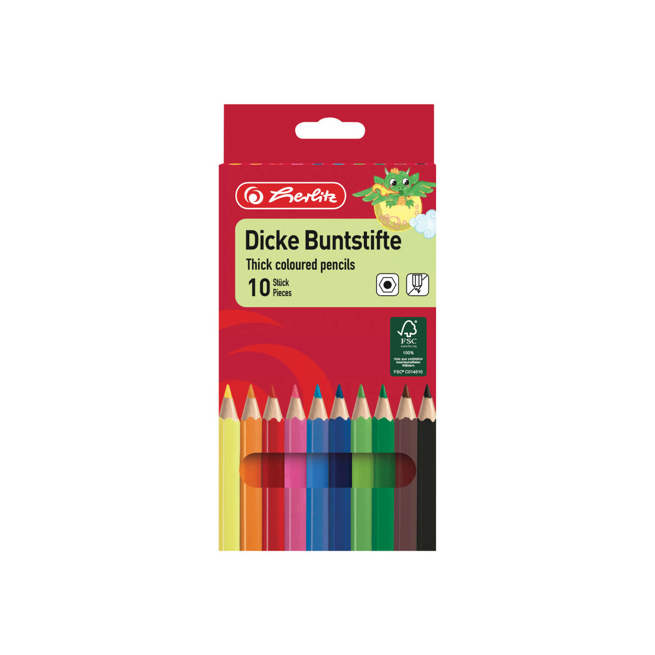 Creioane color hexagonale Jumbo, set 10 Aveti nevoie de putina magie? Atunci creioanele de colorat Herlitz sunt solutia perfecta! Acestea nu sunt doar instrumente de desen, ci sunt portaluri catre lumi imaginare, unde creativitatea copiilor poate zbura sa exploreze orizonturi nemaivazute.Desenul este una dintre etapele ce preced invatarea scrisului, dar si primul pas al copiilor spre invatarea si stapanirea functiilor motorii avansate. Copiii folosesc creioanele colorate pentru a invata prin joaca. Cu o gama variata de culori stralucitoare, creioanele noastre de colorat va vor ajuta sa creati cele mai frumoase si luminoase desene.• 10 culori• corp lacuit• sectiune hexagonala• din lemn natural certificat 100% FSC• mina 6mm