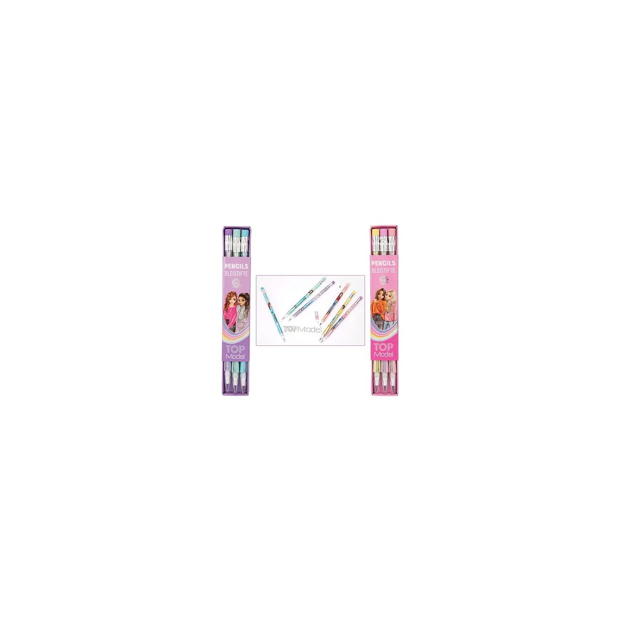 Creioanele mecanice TOPModel in culori pastelate, cu diverse imprimeuri, cu sclipici și radiera asortata au o functie practica: daca mina este uzata, pur și simplu impingeti vechea mina inapoi in tija creionului. Setul contine 3 creioane mecanice