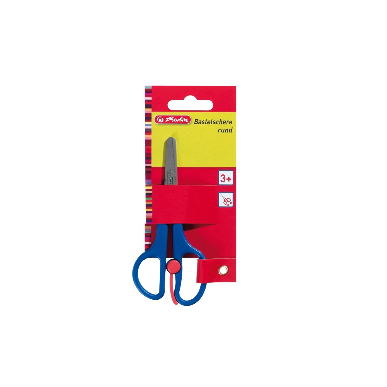Foarfeca scolara, lame din otel cu varf rotund si cu indice de centimetri, lungime 13 cm, maner ergonomic din material plastic cu zona de grip cauciucata, anti-alunecare, diverse culori (albastru, rosu, verde), 1 bucata/carton