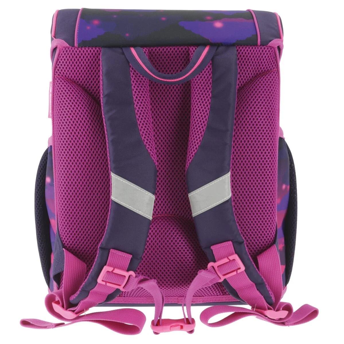 Ghiozdan neechipat Loop, motiv Magic UnicornGhiozdanele Herlitz sunt singurele ghiozdane din Romania acreditate si recomandate de Societatea Romana de Pediatrie. Au structura rezistenta atent captusita astfel incat sa asigure ergonomia, distributia presiunii si greutatii in mod egal pe coloana, precum si aerisirea spatelui si a umerilor. Pozitia ghiozdanului este in intregime reglabila in functie de conformatia copilului – lucru extrem de important. Mentinerea ferma a ghiozdanelor pe spate, lipite de omoplati si reglate in functie de inaltime, este unicul mod de a evita defecte de postura, conform recomandarii medicilor si o cerinta la care ghiozdanele Herlitz raspund indiferent de model sau situatie. In plus, ghiozdanele Herlitz au o greutate optima, de sub 1 kg, asigurand bazele unei cresteri sanatoase. Pentru clasele primareVarsta recomandata: 6 – 10 aniDimensiuni si greutate• Greutate 870 g• Inaltime 37 cm• Latime 31 cm • Adancime 22 cm• Volum 17 lErgonomie• Ghiozdanul ergonomic Loop se remarca prin greutatea sa redusa de doar 870 g si corpul rigid si stabil, in care copiii isi pot organiza cu usurinta materialele scolare, datorita compartimentului interior principal cu doua subdiviziuni, inclusiv spatiu separat pentru carti.• Captuseala buretata din spate, cu forma ergonomica, respirabila, sustine la propriu spatele copilului si il protejeaza, oferind un maxim de confort la purtare.• Baretele de umar reglabile, cu captuseala ergonomica si cureaua pentru torace de asemenea reglabila in inaltime, asigura flexibilitate ridicata si optiuni nenumarate de reglare, pentru a se potrivi constitutiei fiecarui copil. Siguranta si durabilitate• Ghiozdanul Loop are materiale reflectorizante Oralite® de calitate superioara (nu contine PVC) pe fata, pe laterale si pe baretele de umar, care sporesc vizibilitatea copiilor in trafic, in zilele ploioase, intunecate sau seara. De asemenea, pentru un plus de siguranta, ghiozdanul este prevazut cu material reflectorizant suplimentar si in inchizatoarea de tip Click.• Toate materialele utilizate sunt de cea mai inalta calitate, non-toxice, impermeabile si rezistente la inghet, fapt ce ofera protectia perfecta impotriva apei, umezelii si a frigului, protectie necesara atat pentru carti si caiete, cat si pentru spatele micutilor.• Este supus permanent, inca din fabrica, la nenumarate teste de stres si solicitare, conform celor mai exigente norme germane. Particularitati si compartimentare• Spate ergonomic, buretat si aerisit• Barete de umar reglabile, cu captuseala ergonomica • Curea pentru torace reglabila in inaltime • Maner practic cu zona de prindere confortabila• Inchidere cu mecanism Click usor de utilizat si prevazut cu material reflectorizant• Un compartiment interior spatios cu doua subdiviziuni, inclusiv spatiu separat pentru carti• Doua buzunare laterale cu elastic, pentru a ajuta copiii sa se organizeze rapid• Buzunar frontal cu fermoar• Material reflectorizant Oralite® (fara PVC) aplicat pe ghiozdan pentru vizibilitate optima• Baza ghiozdanului este stabila, din material rigid, cu picioruse din plastic, care vor tine la distanta umezeala si murdariaCertificarea OEKO-TEX primita garanteaza ca produsul este realizat in intregime din textile netoxice. Materialele utilizate in fabricarea acestui ghiozdan nu contin PVC.Toate ghiozdanele si rucsacurile Herlitz includ 2 ani garantie!Ghiozdanele Herlitz aduc la viata visurile copiilor! Cu Herlitz imaginatia si visurile copiilor nu cunosc limite – fie ca e vorba despre fluturi stralucitori care-si schimba culoarea datorita paietelor reversibile, astronauti in costume stralucitoare care cutreiera universul, dinozauri periculosi, campuri cu flori multicolore, masini iuti de curse sau unicorni ce traiesc intr-o lume fantastica a curcubeelor.Cel mai bun companion ergonomic – toate ghiozdanele noastre au fost concepute in Germania si realizate cu atentie si drag, imbinand inovatii inteligente, materiale de inalta calitate si multa maiestrie, pentru a putea sa va bazati 100% pe noi si pe produsele noastre. Recomandari in alegerea ghiozdanului• Baretele de umar trebuie ajustate periodic, deoarece copilul este permanent in crestere.• Ghiozdanul trebuie sa fie cat mai bine ajustat, pentru a sta cat mai strans pe corpul copilului. • Marginea de sus a ghiozdanului trebuie sa ajunga la nivelul umerilor, iar cea de jos la nivelul soldului.