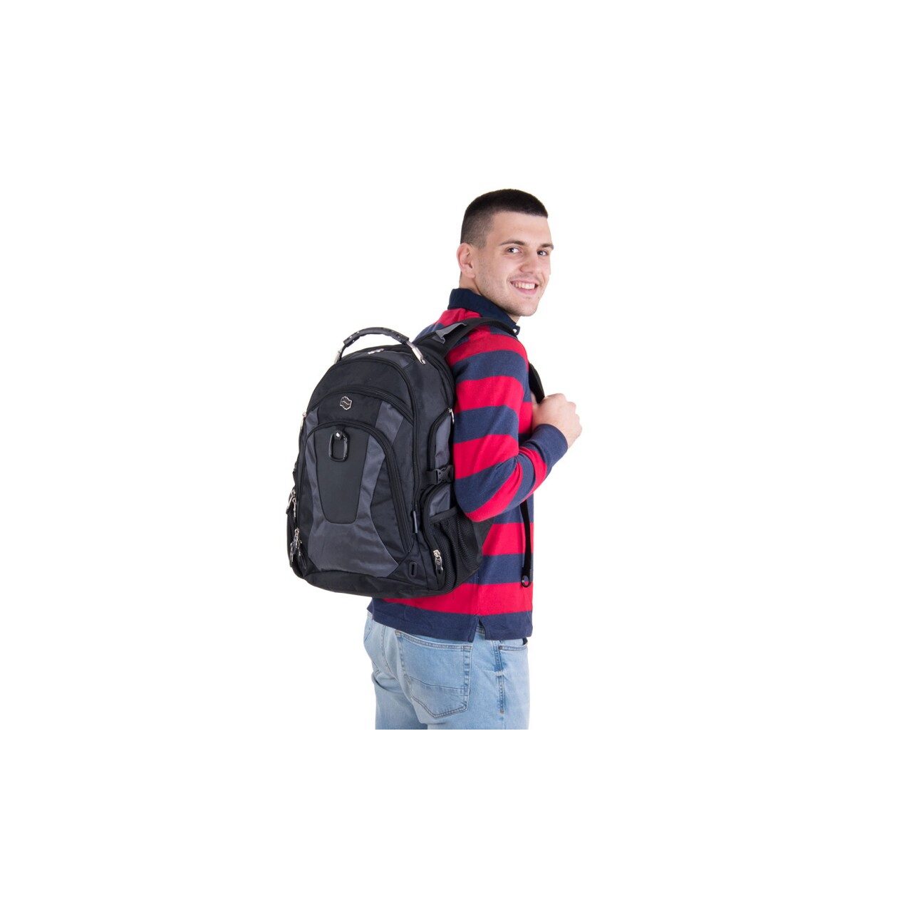 - Compartimente: Compartiment pentru laptop: da, ranforsat cu spuma EVA, 2 compartimente frontale, 4 buzunare laterale