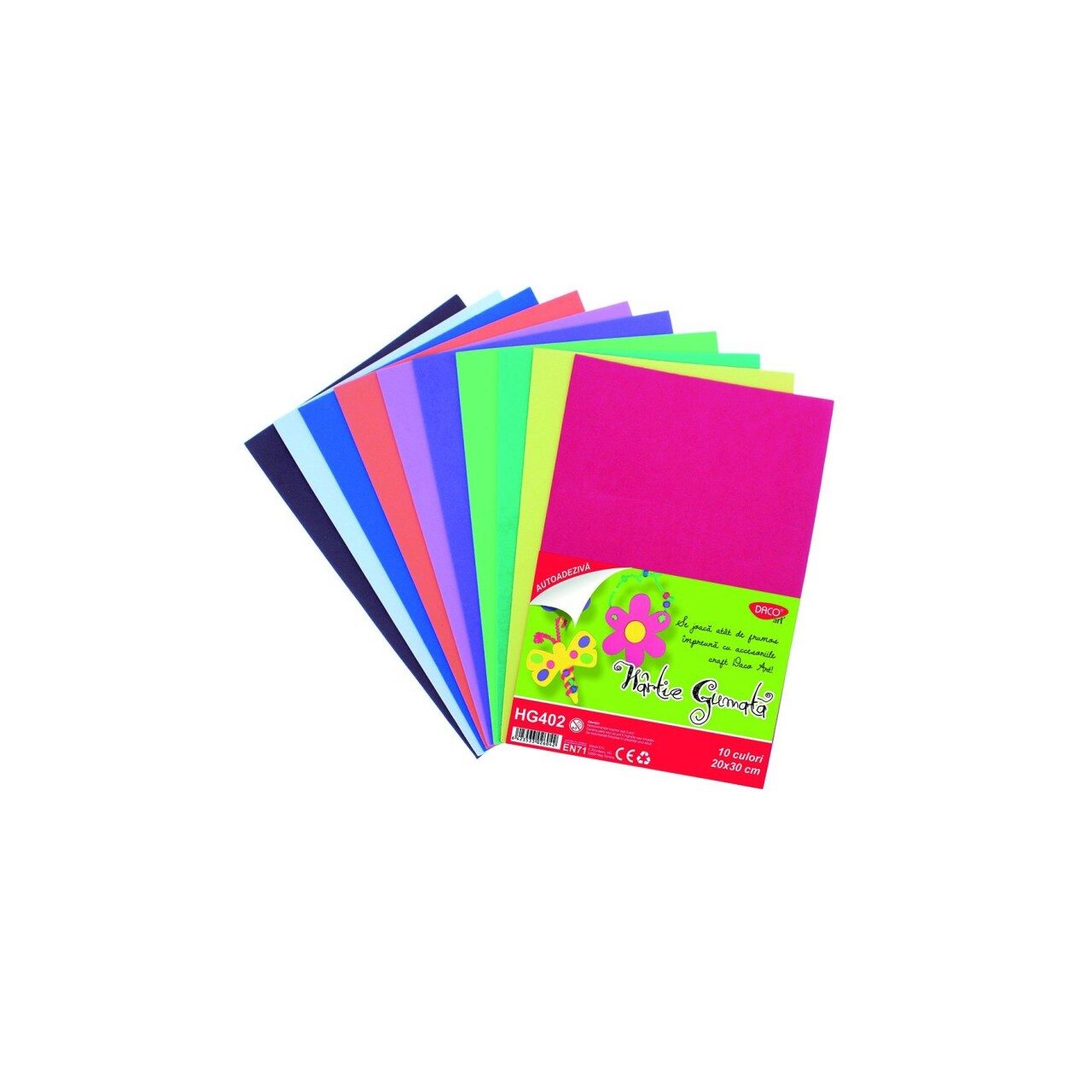 Hartie gumata EVA autoadeziva, 10 coli, 10 culori (albastru, galben, maro, mov, negru, portocaliu, rosu, roz, verde deschis, verde inchis)