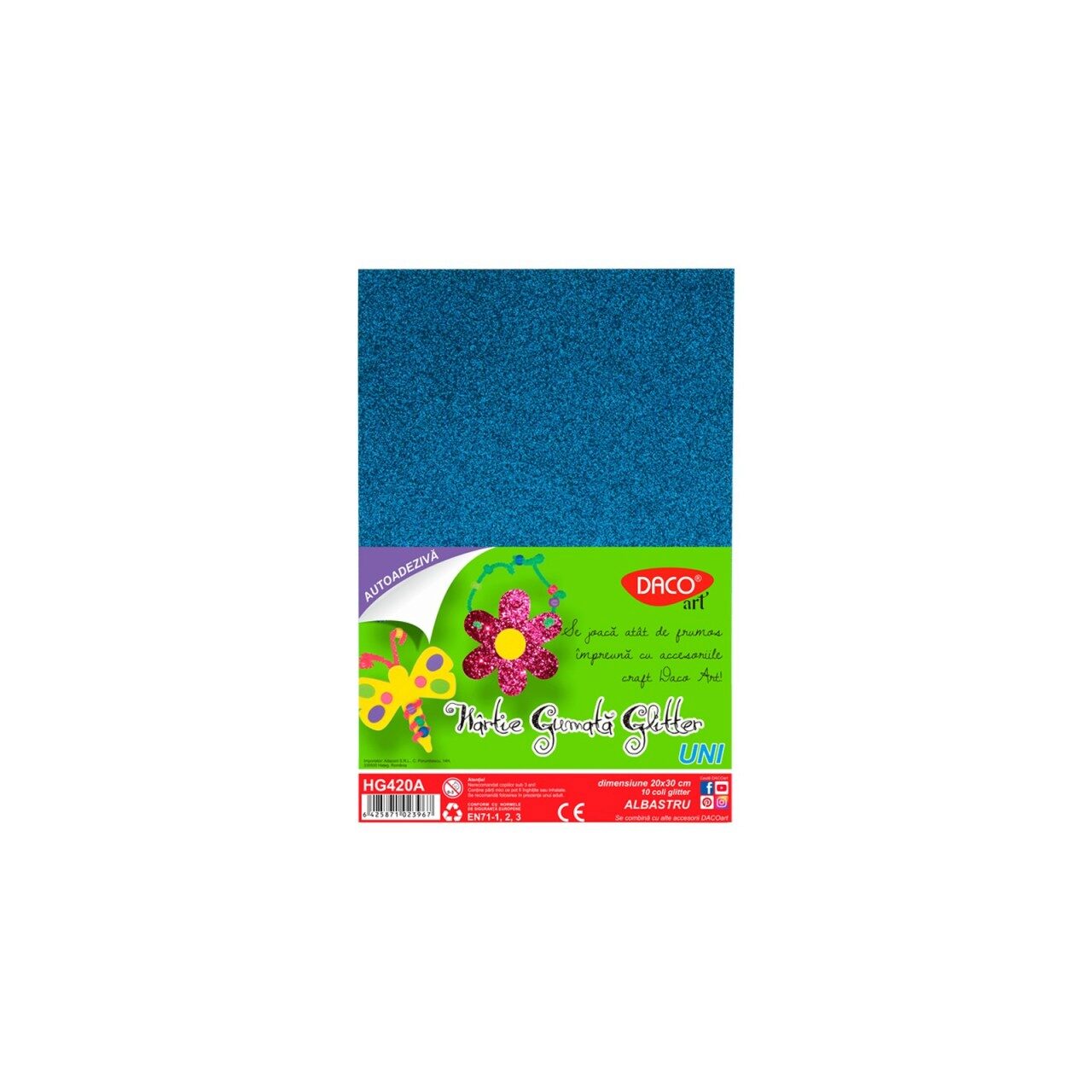 Hartie gumata autoadeziva glitter 10 coli DACO Albastru