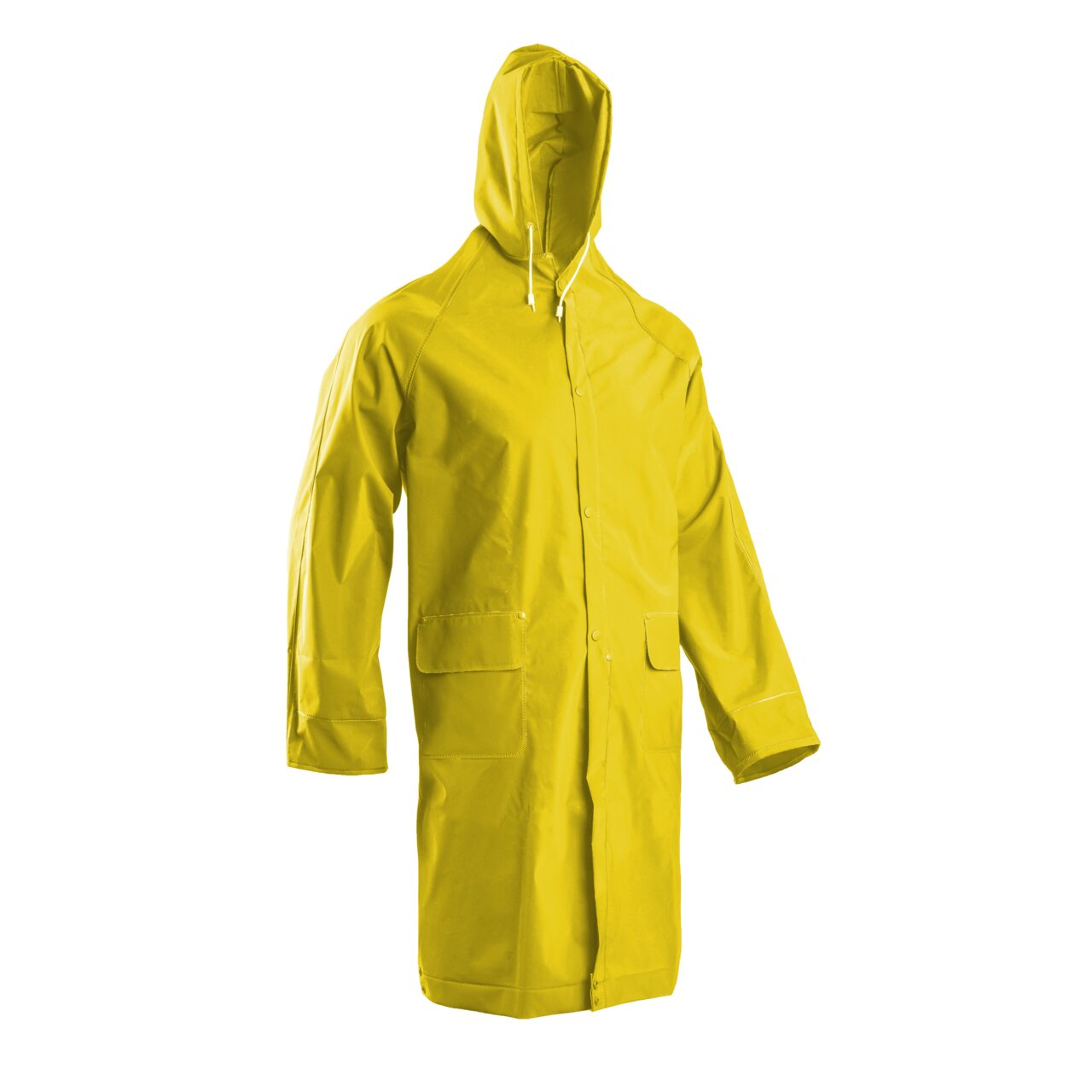 PVC cufundat de două ori pe baza din poliester / bumbac * 0,32 mm grosime, cusută și sudată, impermeabilă * două buzunare exterioare, manșetă cauciucată * design lung de teacă de 4/4 (120 cm)