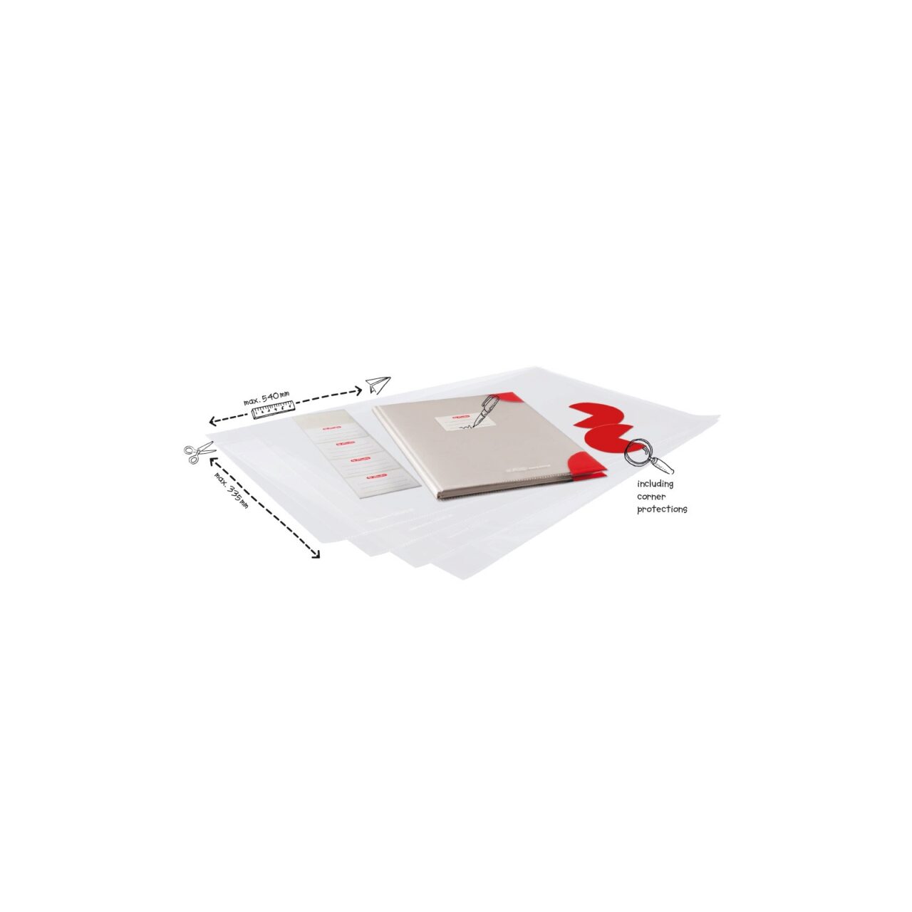 Invelitori flexibile ajustabile, herlitz, model easy.cover, din polipropilena de inalta calitate, transparente, crystal, potrivite pentru toate formatele de carti deoarece pot fi reglate si taiate in functie de dimensiunea necesara (max. 335 x 540 mm), setul contine 5 invelitori cu dimensiunea 585 x 340 mm + 24 protectii pentru colturi de culoare rosie + 5 etichete pentru nume, prezentare sub forma de rola, in cutie de carton.