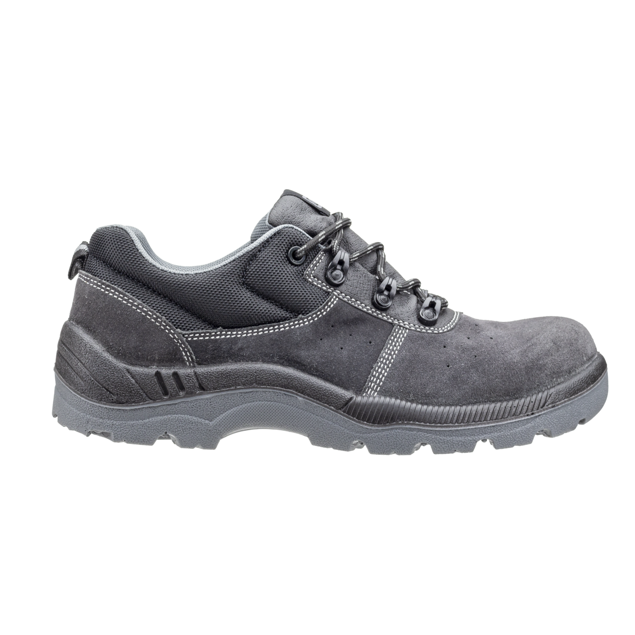 Căpută din piele velur cu aerisire, cu microperforații, de culoarea antracitului * talpă PU antistatică, rezistentă la ulei, antiderapantă SRC, cu strat dublu * protecție pentru degetele de la picioare împotriva căderii de obiecte și inserție în tălpi împotriva perforării, toc absorbant de energie * căptușeală din material nețesut, care absoarbe umiditatea și permite aerisirea * branț confortabil, burete în zona gleznei * bombeu din compozit și inserție în talpă din material textil, fără metal