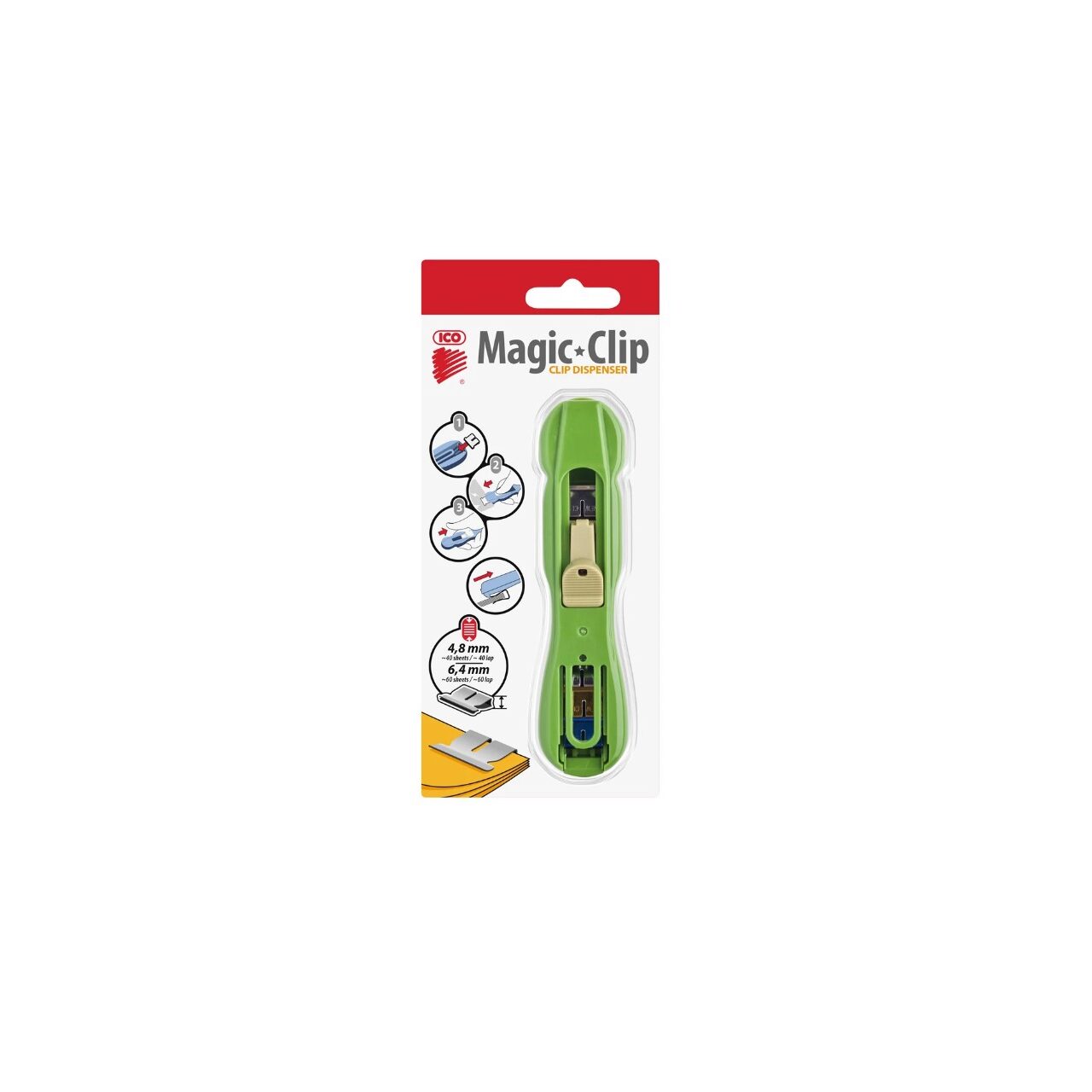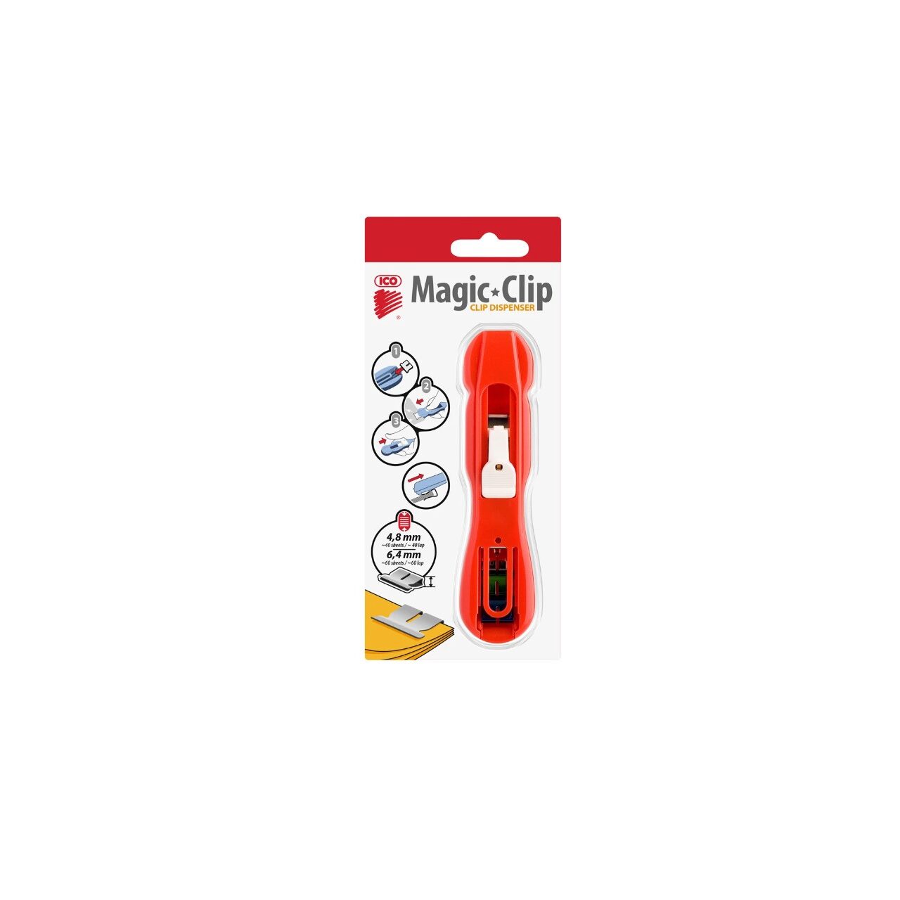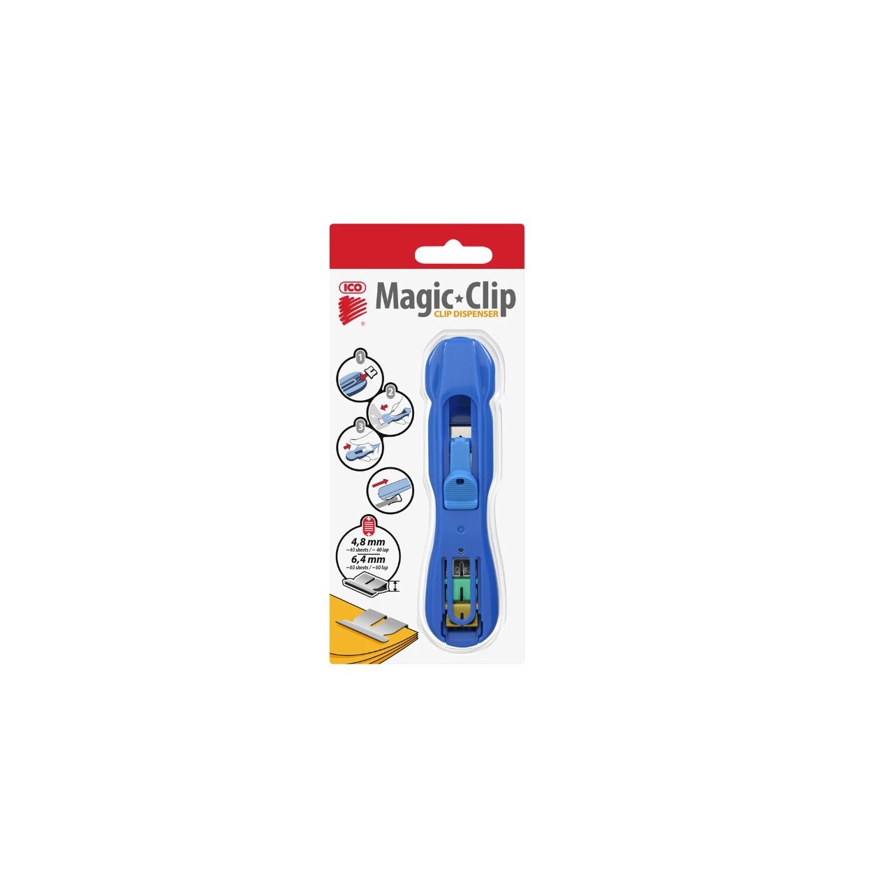 Structură specială de prindere, pentru fixarea rapidă și fără a deteriora paginile. Clipurile 48A sau 64A sunt inserate în mașina Magic Clipper și apoi glisate pe paginile de hârtie printr-o mișcare simplă. - Clipurile fixează ferm paginile, iar după înlăturare, pot fi refolosite. Accesorii: umplute cu clipuri mixte