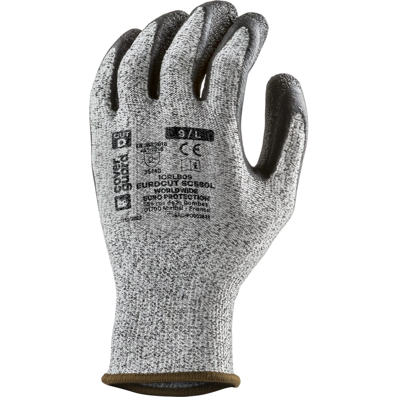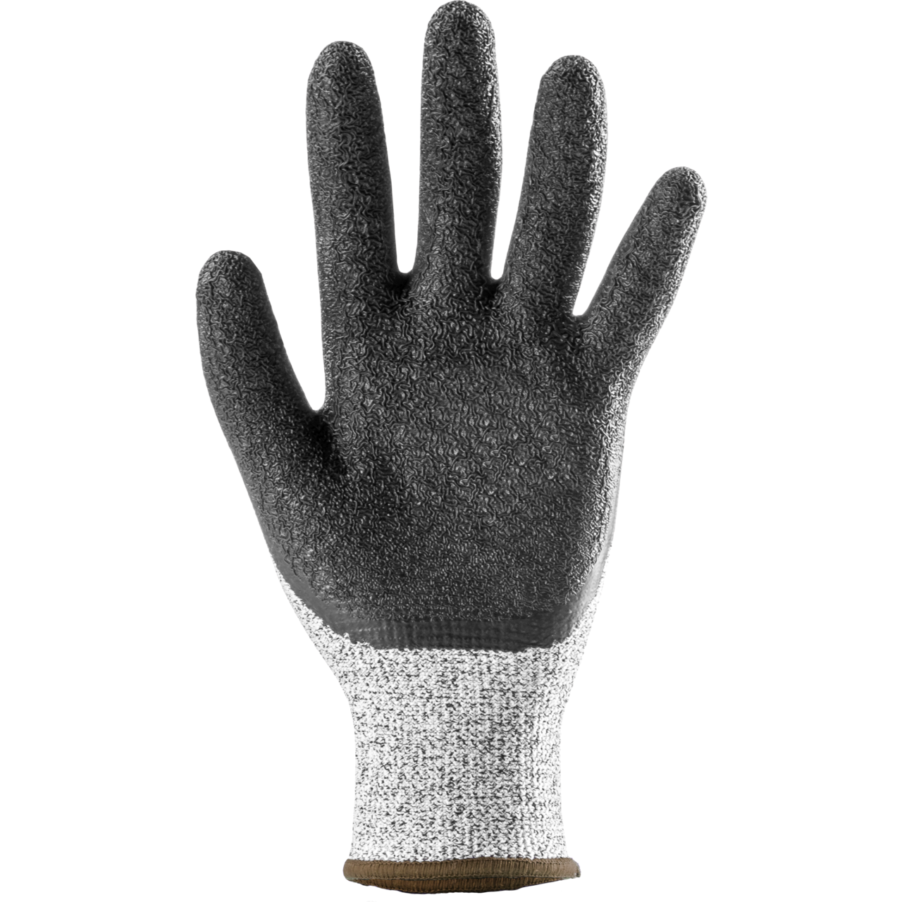 mănuși de bază din fibre HPPE + fibre minerale + elastan PA cu tricot 13, de culoare gri, cu rezistență la tăiere * impregnare cu latex negru pe palme, cu suprafață anti-alunecare * capacitate excelentă anti-alunecare chiar și în medii umede * protecție confortabilă, durabilă și maximă la tăiere, rupere și perforare * manșetă flexibilă, cauciucată