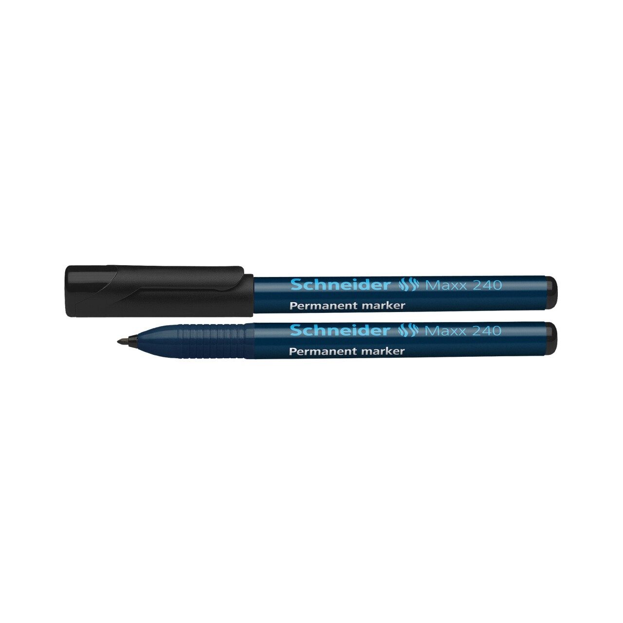 Marker Schneider Maxx 240 cu corp din plastic recomandat a fi folosit pentru scrierea pe suprafețe diverse precum: carton, hârtie, lemn, metal, sticlă etc. Cerneala se usucă rapid și este rezistentă la apă, la lumină și la ștergere.