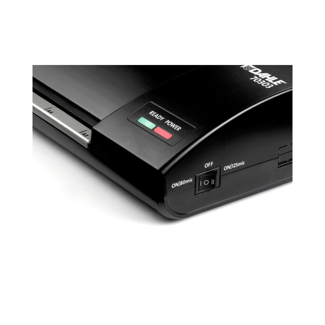 - Acceptă folii de laminat de maxim 250 (2 x 125) microni