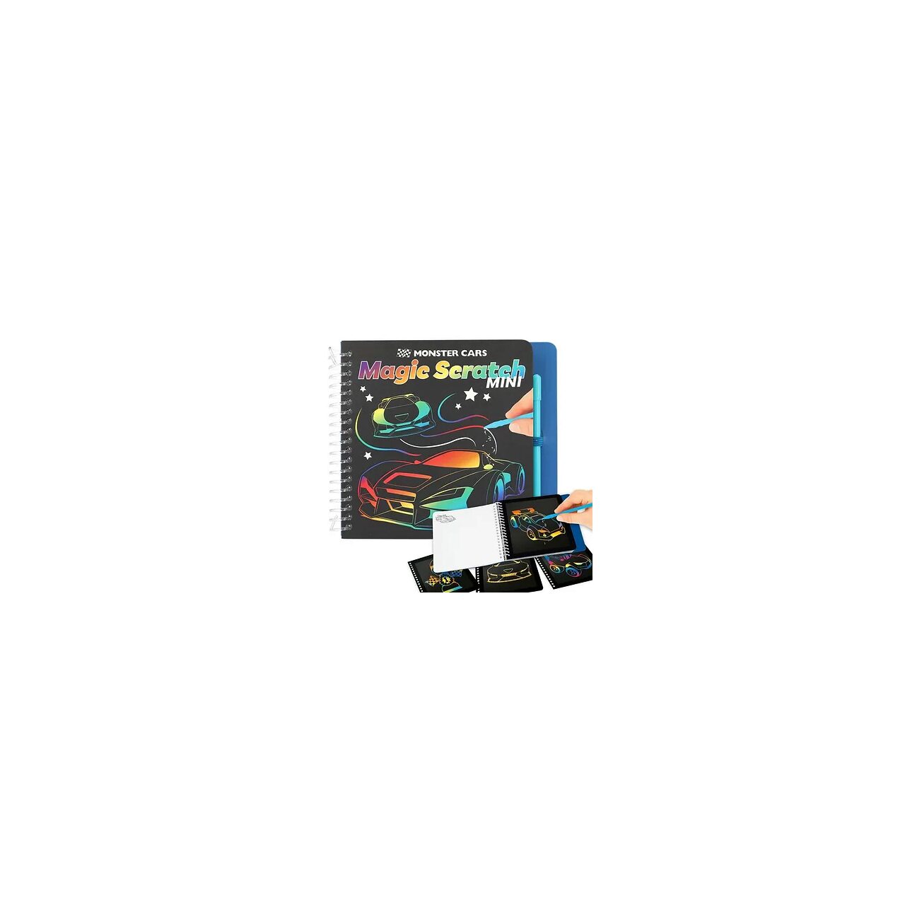 Cartea Monster Cars Magic Scratch Mini este atat de cool: 20 de pagini negre sub care poti descoperi masini de curse. Stiloul este inclus.