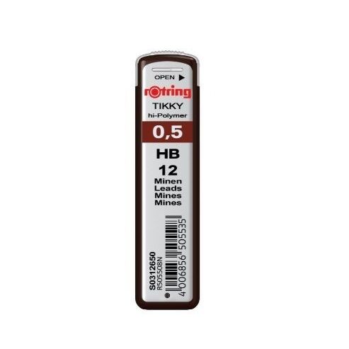 Mine din grafit pe baza de polimer, fabricate dupa o reteta speciala pentru a oferi o rezistenta deosebita la rupere. Minele sunt ambalate intr-un recipient din plastic, cu sistem eficient de deschidere. Ambalare: 12 mine/etui. Diametru: 0.5 mm. Duritatea: HB.