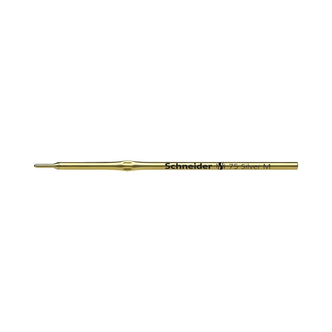 Mină Schneider Silver 75 cu pastă argintie. Pasta de culoare argintie este recomandată pentru scrierea pe hârtie în culori închise – de exemplu, pe mape din carton, scrisori, albume, invitații etc.