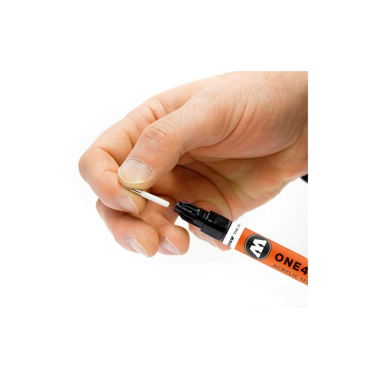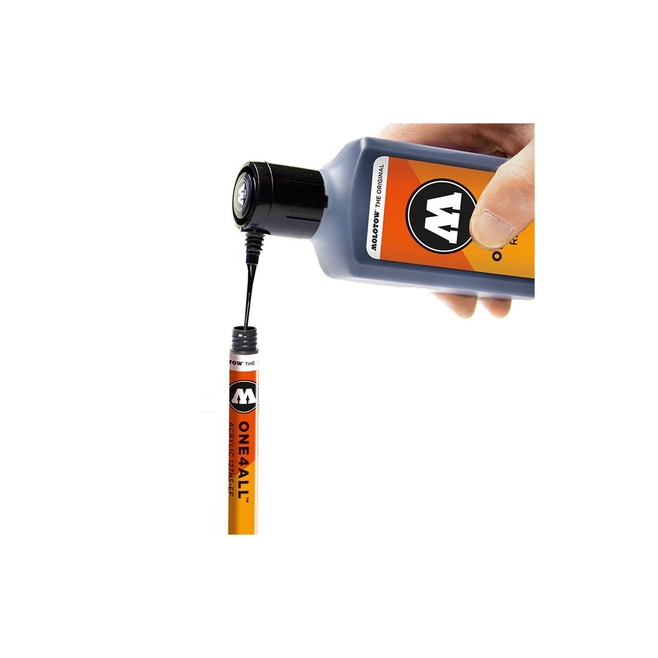 Foarte opac și rezistent UV pe toate suprafețele, markerul acrilic ONE4ALL™ are un sistem conceput pentru a performa impecabil, de fiecare dată, și pentru a fi reîncărcat cu ușurință. Versatilitatea și consistența în utilizare în nenumărate aplicații, valorizează o dată în plus aceste markere - fie că este vorba despre decorarea sneakers-ilor, skateboard-urilor sau surf-urilor, lucrări de artă, pe pânză, sketch-uri sa, nimic nu este imposibil cu ONE4ALL™.