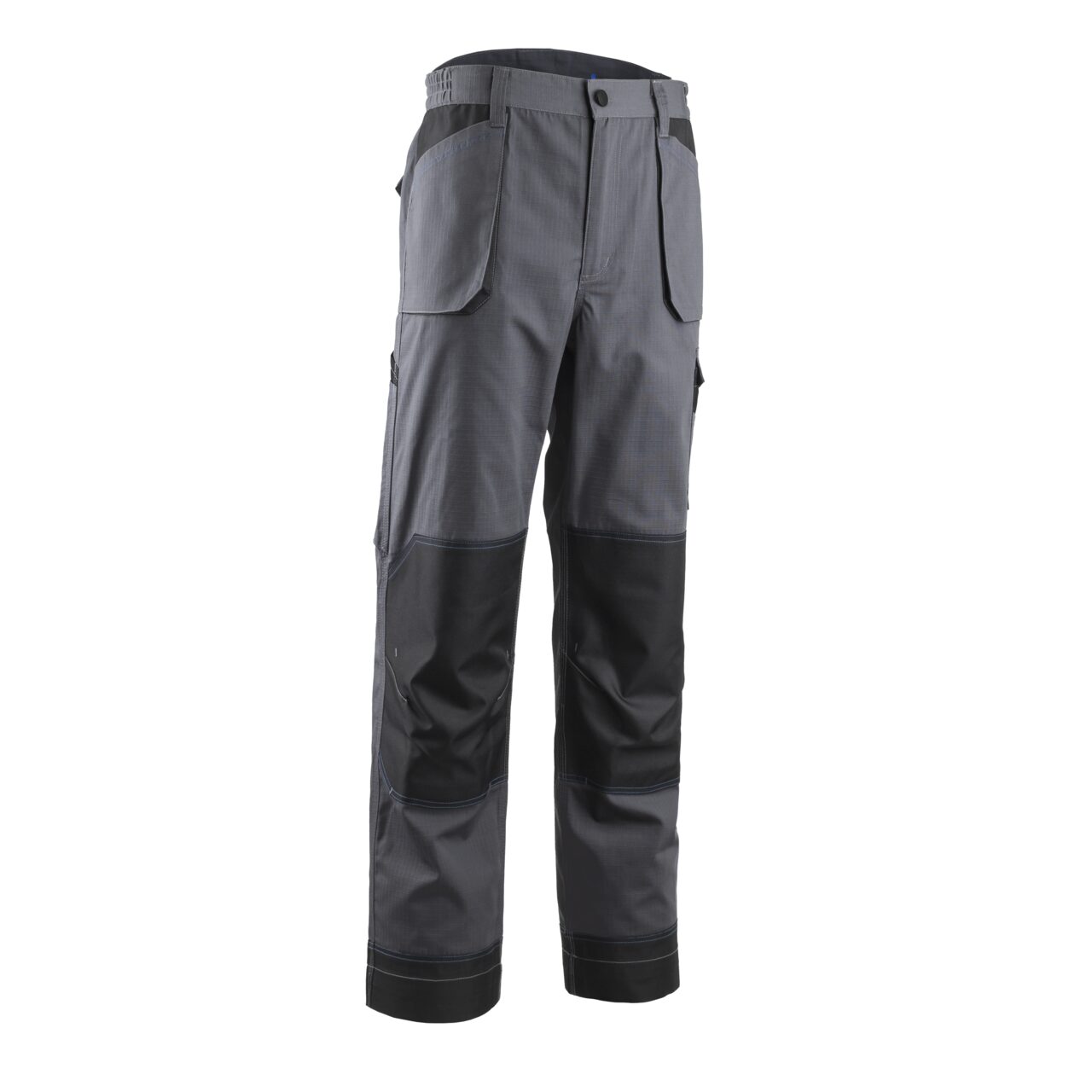 RIPSTOP: 65% poliester / 35% bumbac - 240g/m². OXFORD: 100% poliester / PU - 600D Cureaua elastică pe părțile laterale + Bucle Extensie la spate cu marcaj 2 buzunare italiene cu burduf 2 buzunare la spate cu clapetă 1 buzunar cargo + Compartimente multiple Buzunare duble pentru riglă, dintre care unul cu burduf 1 buclă pentru ciocan Genunchi preformați Buzunare pentru genunchiere Oxford, încărcare prin partea inferioară Multiple întărituri Oxford Lungime reglabilă: +5cm Cusături triple Croială regulată