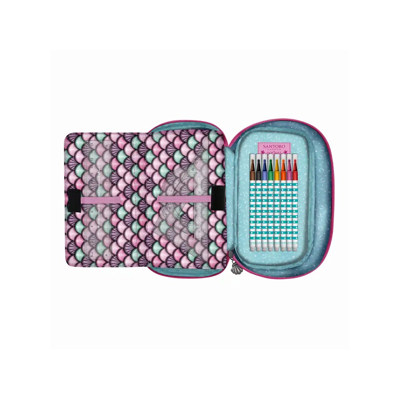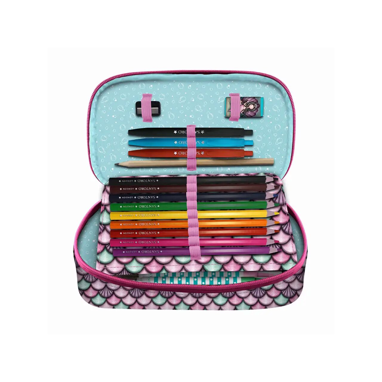 - Penarul echipat Santoro Gorjuss contine produse de calitate si te scuteste de multa alergatura prin magazinele de papetarie.