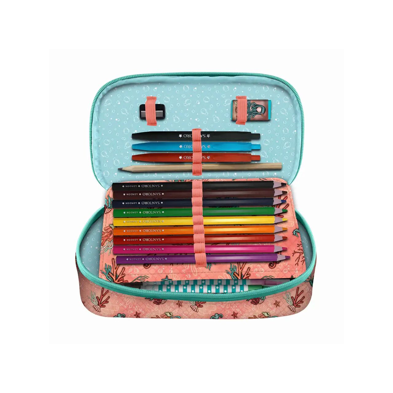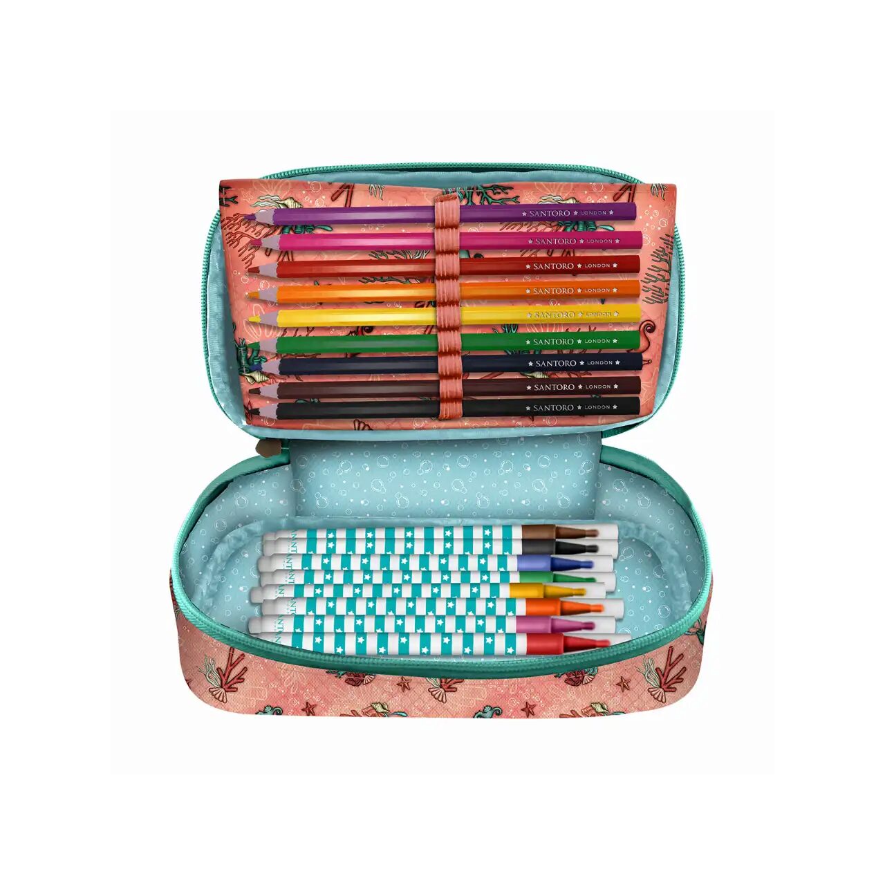 - Penarul echipat Santoro Gorjuss contine produse de calitate si te scuteste de multa alergatura prin magazinele de papetarie.