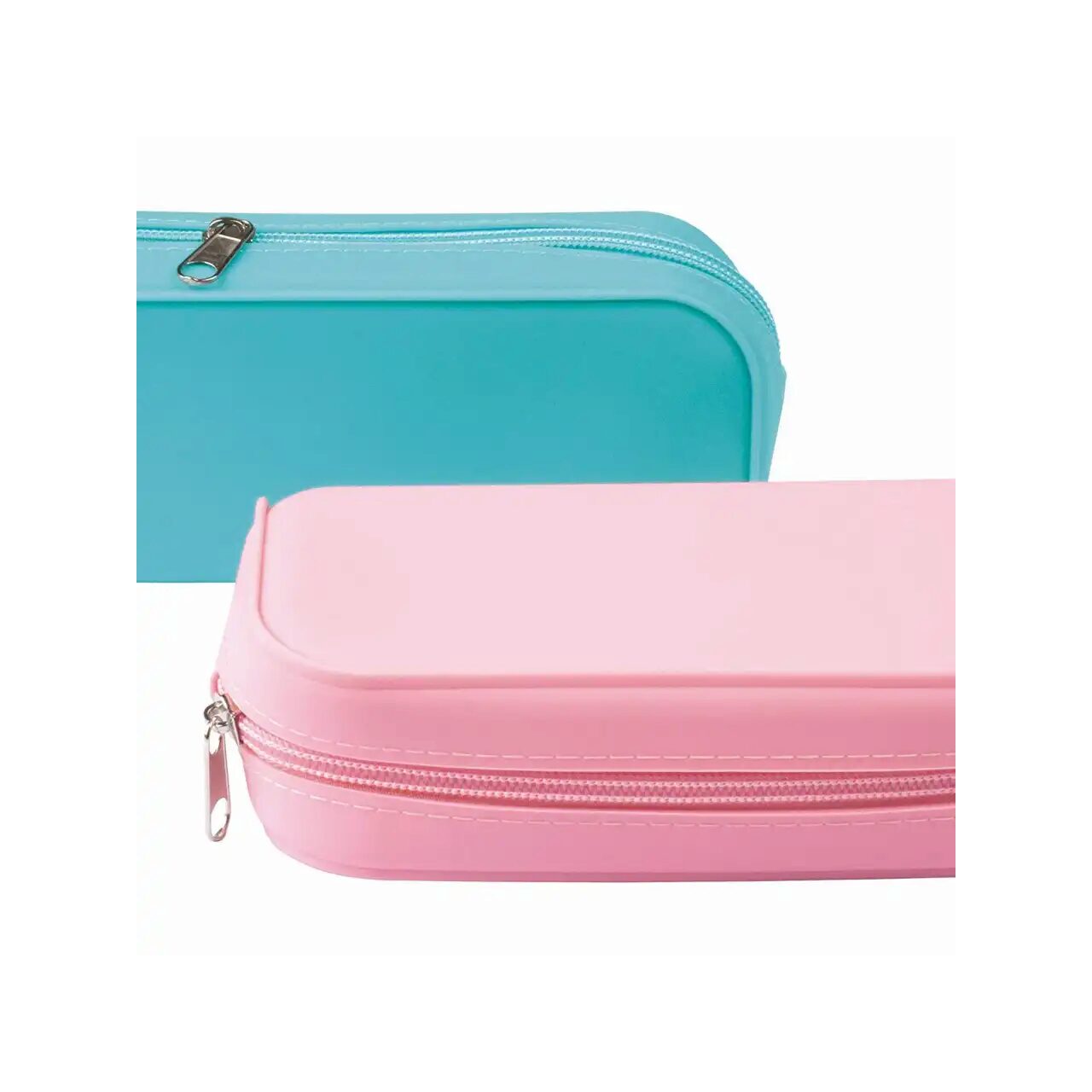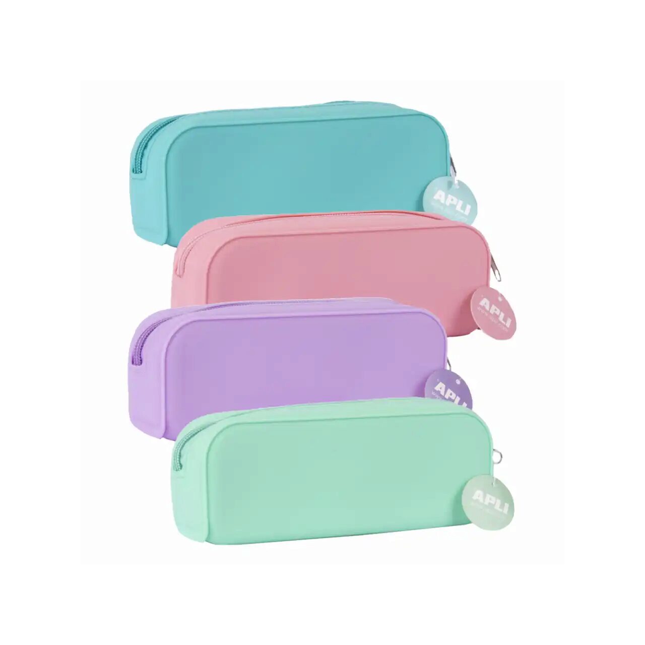 Fabricat din silicon de inalta calitate, flexibil. Penar cu dimensiunea de 185 x 75 x 55 mm in culori pastel, prevazut cu fermoar. Rezistent la apa si foarte usor de curatat. Diverse culori: roz/blue/verde/mov.