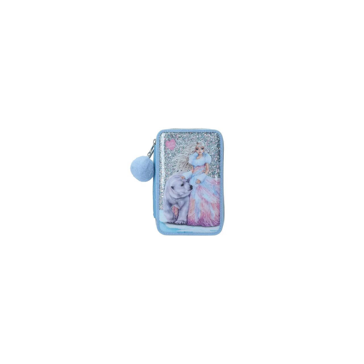 Penarul TOPModel ICEWORLD cu design strălucitor cu urs polar. Cele trei compartimente separate sunt complet echipate cu 18 pixuri, 18 creioane colorate (nou: calitate îmbunătățită a lemnului și mina mai groasă, mai durabila), 2 creioane, radieră, ascuțitoare, riglă, foarfece, lipici și o pungă mică cu velcro. Un plus drăguț: pandantivul pufos cu fermoar.