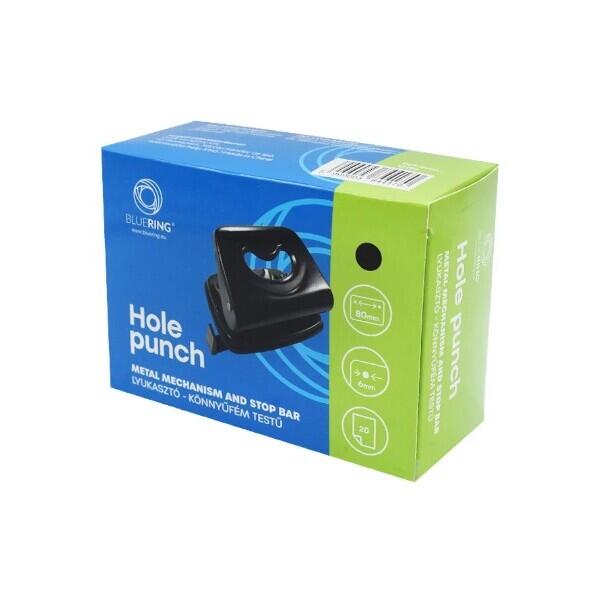 Perforator metalic ușor, cu structură metalică, cu o bară de ghidare. Distanțierul este reglabil, cu un recipient pentru resturi. Distanța între găuri: 80mm. Diametrul găurii: 6mm. Numărul de foi perforate simultan: 20 foi.