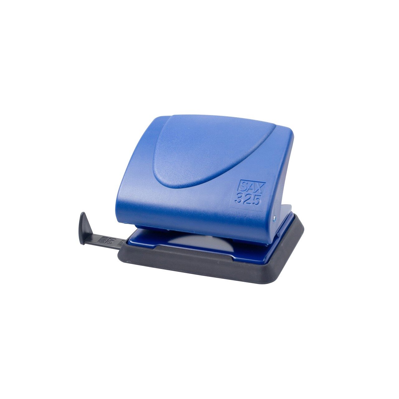 Perforator SAX 325 a cărui corp are baza din metal ușor, cu clapă din plastic și riglă de ghidaj din plastic.
